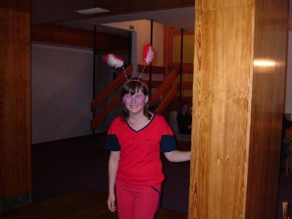 Poslední večer společenská místnost na chatě ožila maskami, neboť byl na programu karneval. Všichni obdivovali vtipný komentář pana učitele Třískaly.
