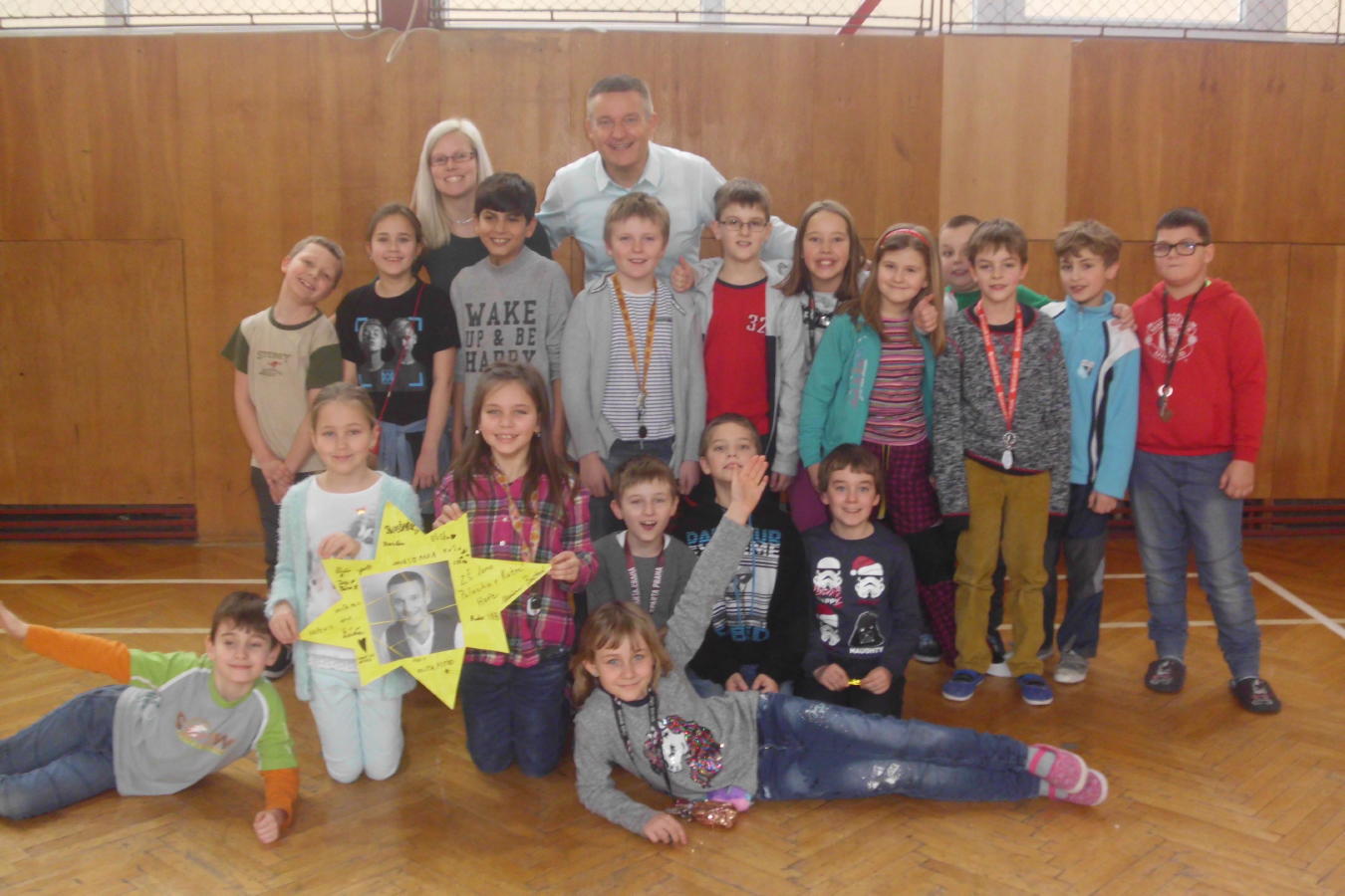 Pokud někdo chtěl, Vláďa ochotně rozdával autogramy a fotografie. Děti ze 3.A a ze 3.B mu jako poděkování vyrobily krásné dárečky.![]()