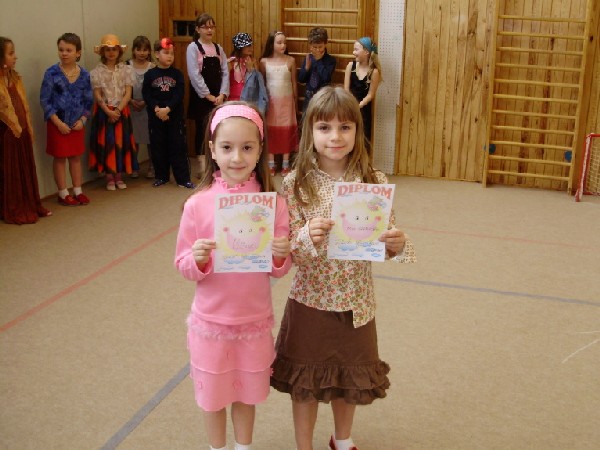 Po roce se opět družinová tělocvična zaplnila krásou. Tentokrát nejen dívčí. Martin a Kuba předvedli, že nejen holky umí ladně jít a rozdávat úsměvy. A že se naši chlapci líbili dokazuje Martinovo 3.místo. Velké díky patří p.Hervertové, která věnovala na soutěž občerstvení pro soutěžící a ceny pro vítěze.