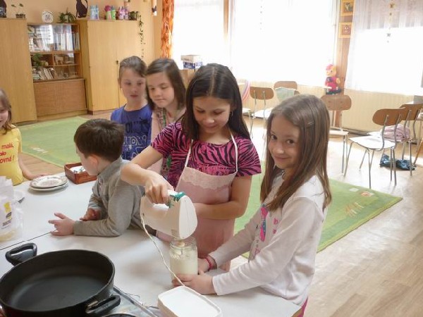 Chuť na lívanečky byla tak veliká, že si dokonce přinesli i šlehaný tvaroh, marmeládu a šlehačku na zdobení. Děvčata za pomoci a rady vychovatelky zadělala na lívanečky a už se smažilo. Výsledek byl nad očekávání dobrý, a tak jsme si moc pochutnali a vaření si chceme brzy zopakovat. Mňamka to byla! Podívejte se na fotky.....