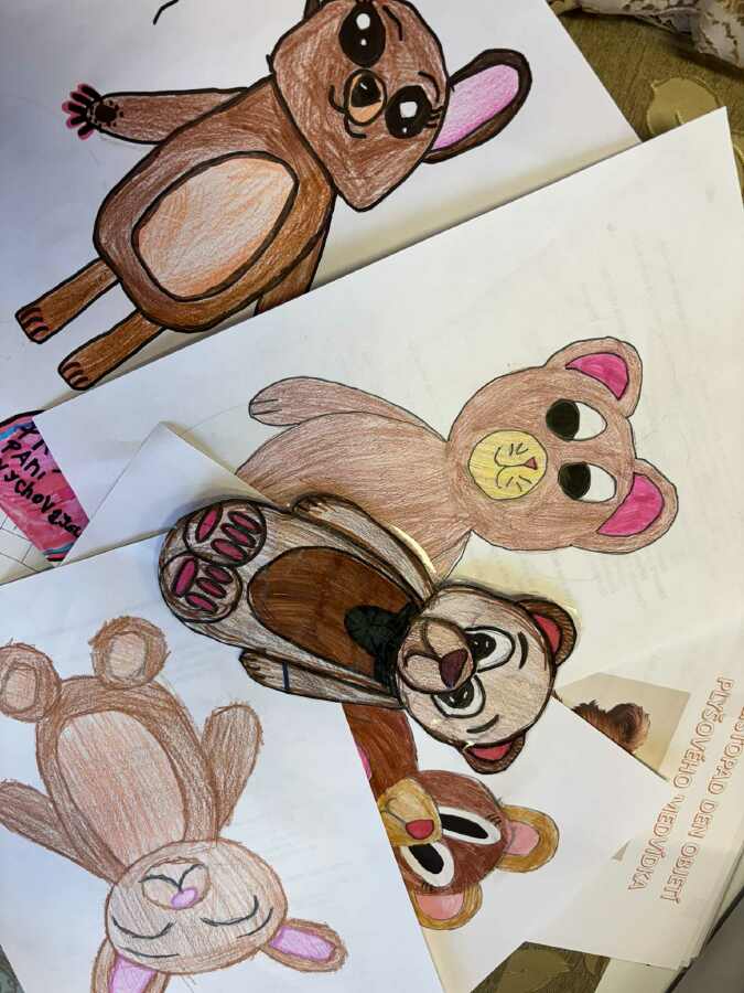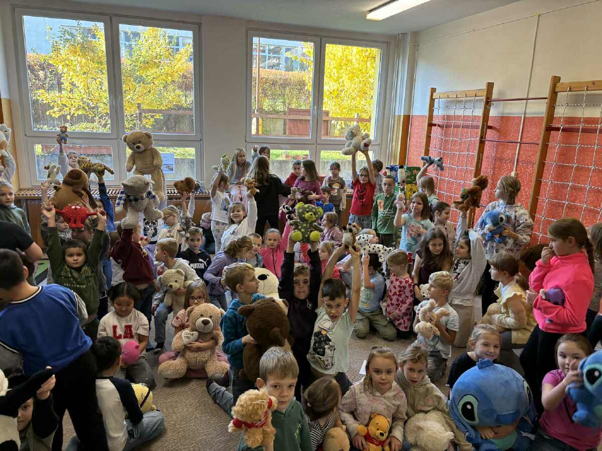 Hned ráno nás družina přivítala animovaným příběhem Míši Kuličky zroku 1975. Plyšáci šly s námi i na vyučování, na oběd. Pak následovala etapovka médi Bedřicha. Někteří ještě stihli namalovat krásné medvědí portréty.