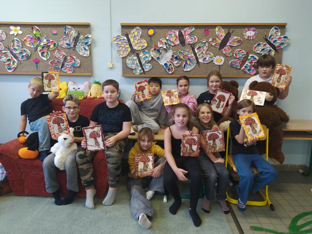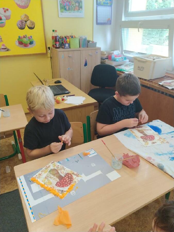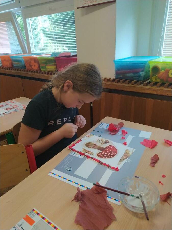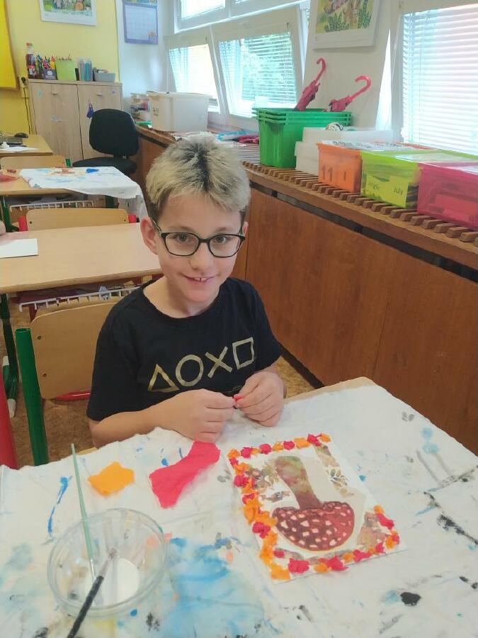 V bílém oddělení jsme si vyzkoušeli ubrouskovou techniku. Vytvořili jsme krásné "houbové" obrázky jako dárek pro rodiče nebo prarodiče.