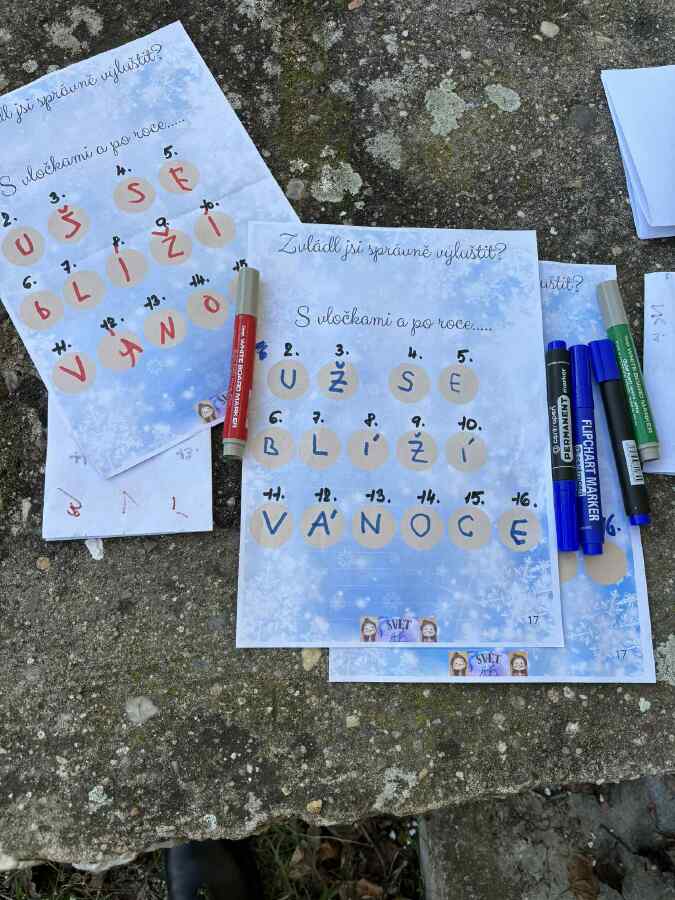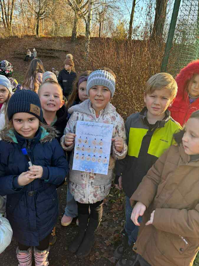 Vánoční skřítci nám připravili tak trochu zamotanou vánoční hru. A tak jsme běhali, zapisovali a nakonec doplnili správně tajenku.