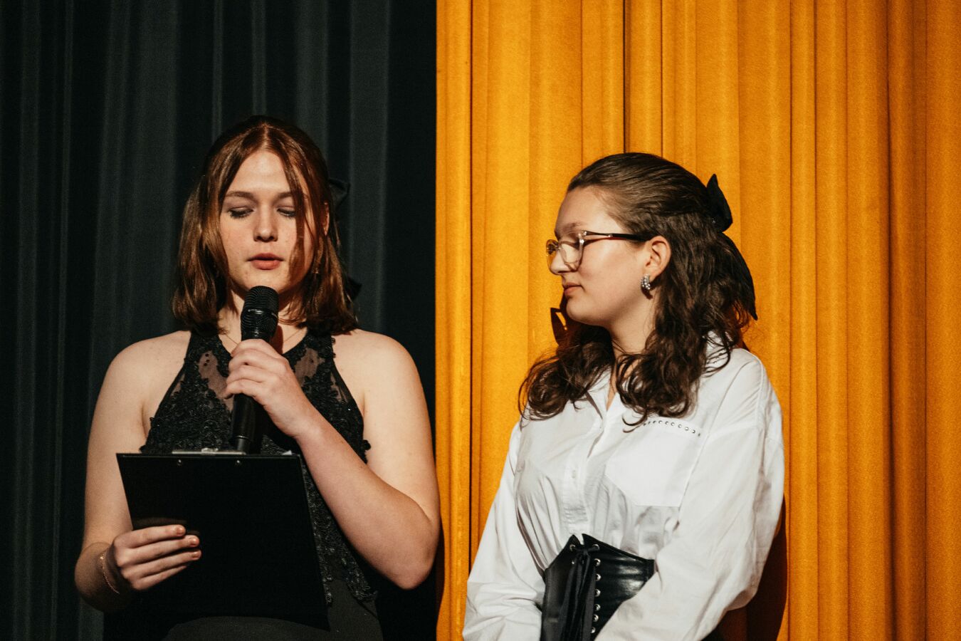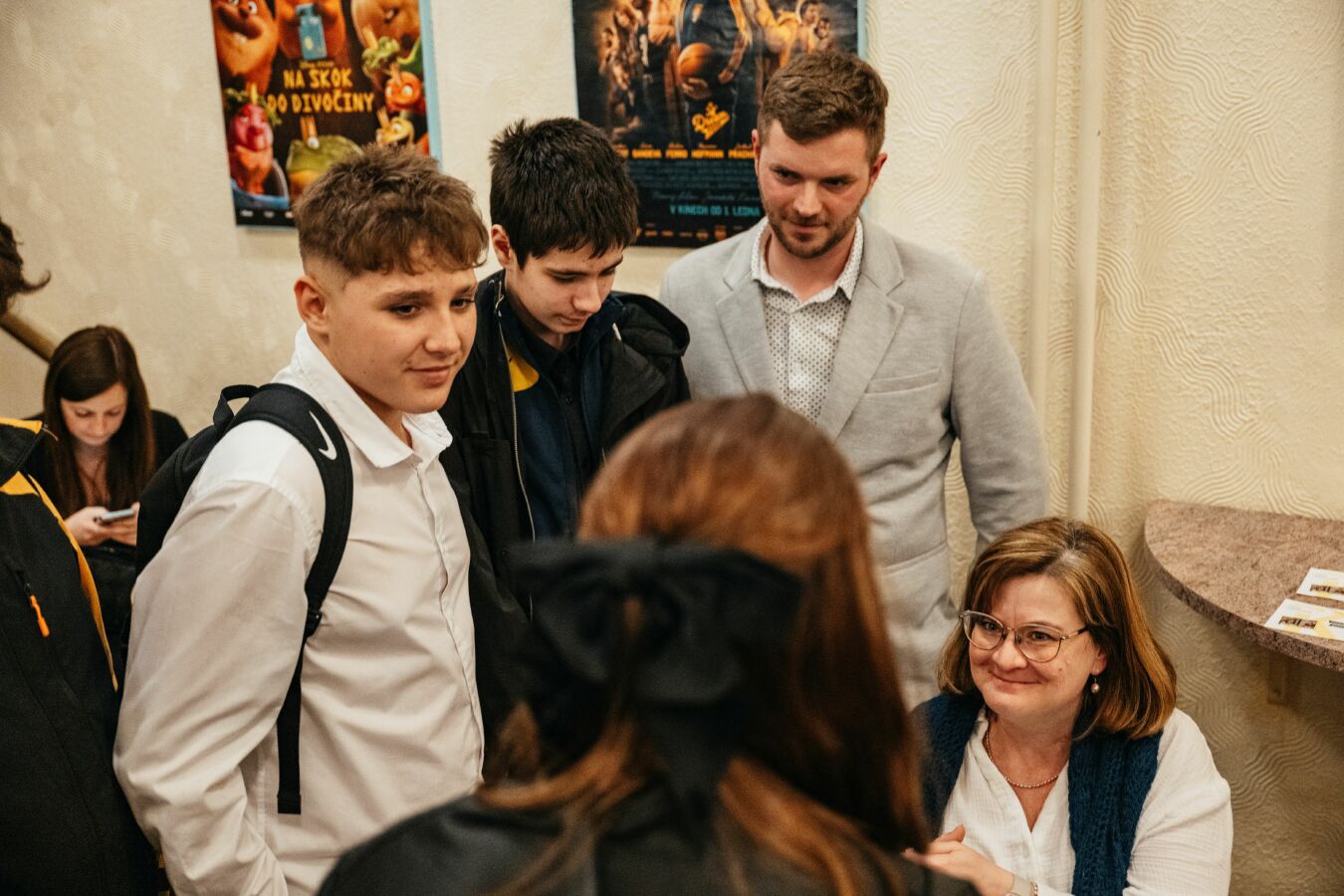 Pro samotné žáky to byla určitě velmi zajímavá zkušenost, vystoupit před diváky a povídat o životě prvního ředitele naší školy. Na závěr se žáci podělili s obecenstvem o dvě krátká videa z natáčení, která v ten moment zaskočila i samotného pana Hojku. Pokud jste neměli tu možnost být na závěrečné prezentaci, tak se na obě videa můžete podívat pomocí QR kódů v galerii a zavzpomínat na pana ředitele Hojku.