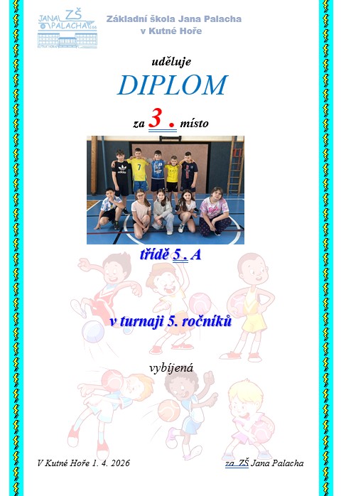 Dne 1. dubna 2026 se na naší škole uskutečnil sportovní turnaj žáků 5. ročníků ve vybíjené. Turnaje se zúčastnila tři družstva.
