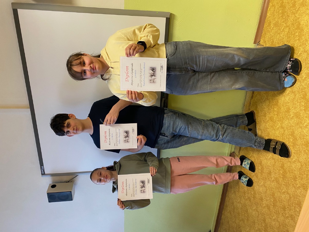 Po sečtení bodů, byli vybráni tři nejúspěšnější žáci, kteří naši školu budou reprezentovat v okresním kole dějepisné olympiády.