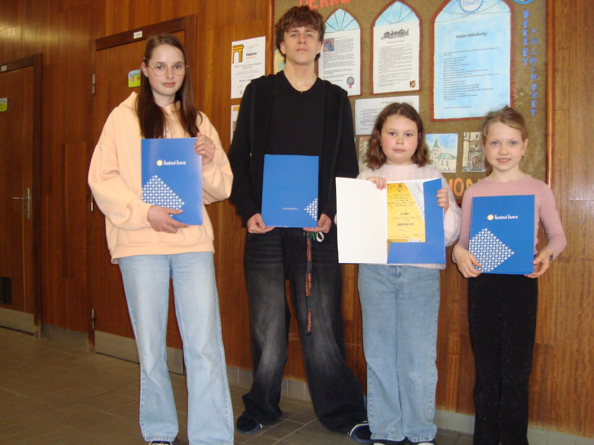 3. místa: Jakub Mrňák 1. C, Eelen Angarag 1. C, Zoe Valenová 2.C, Filip Blumentál 9. B,