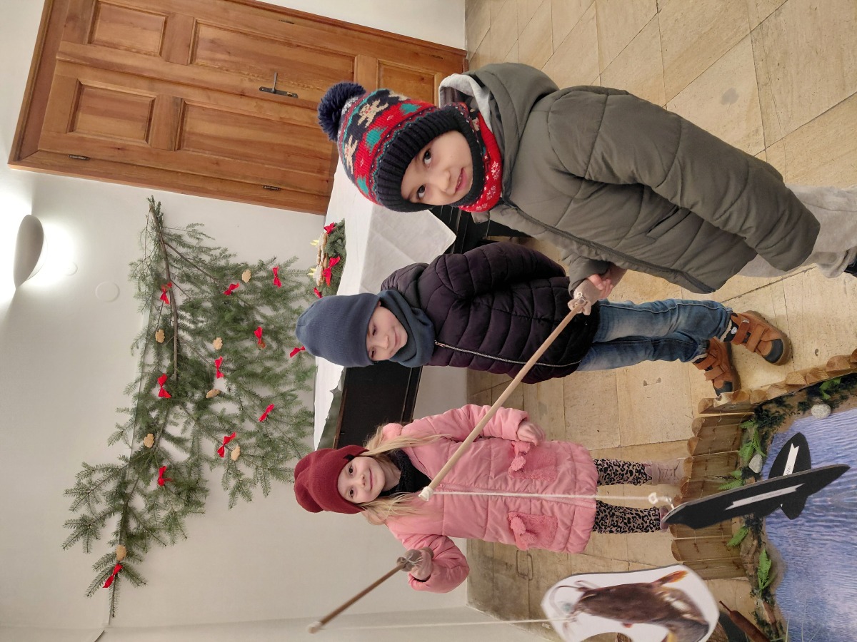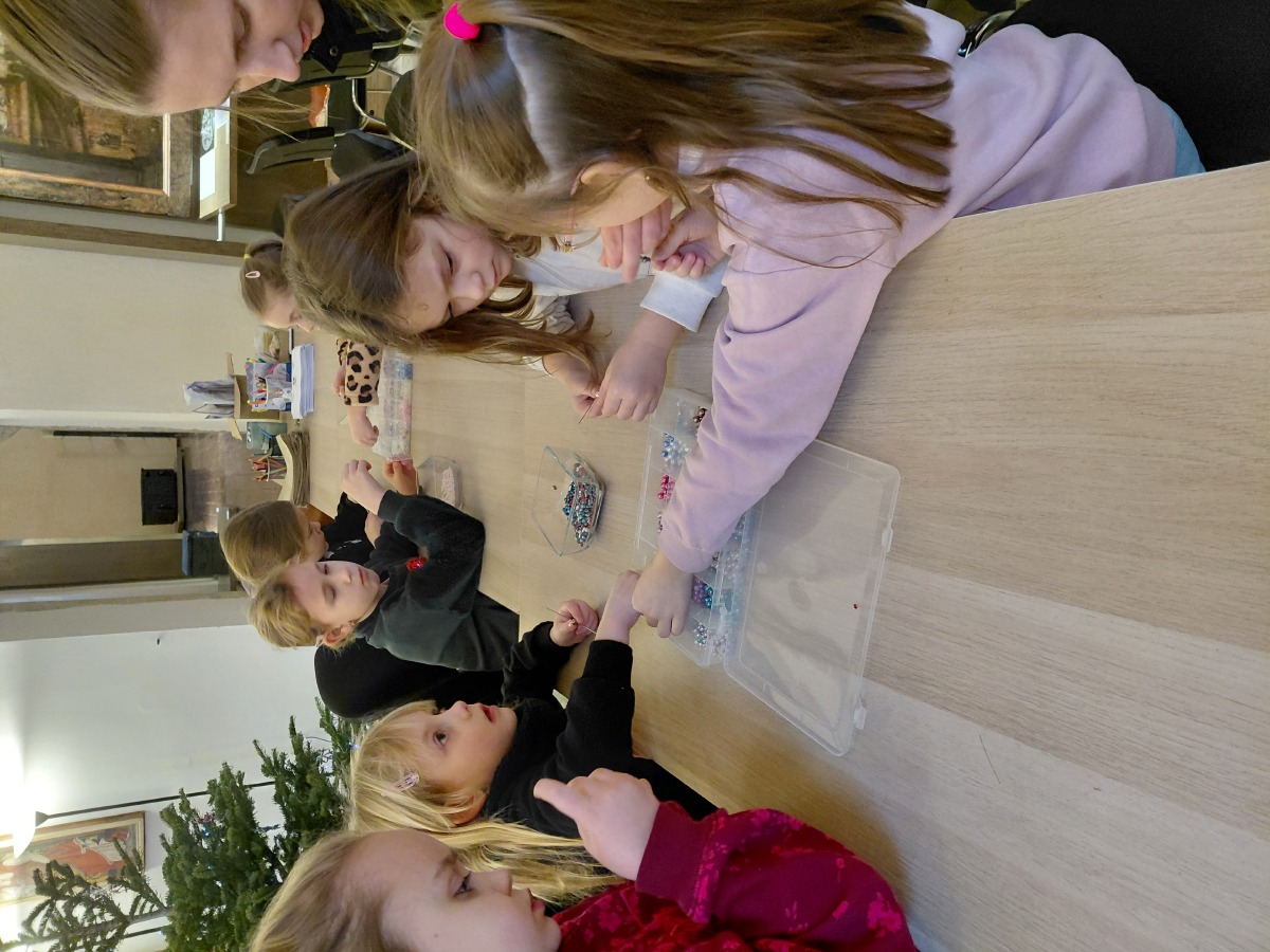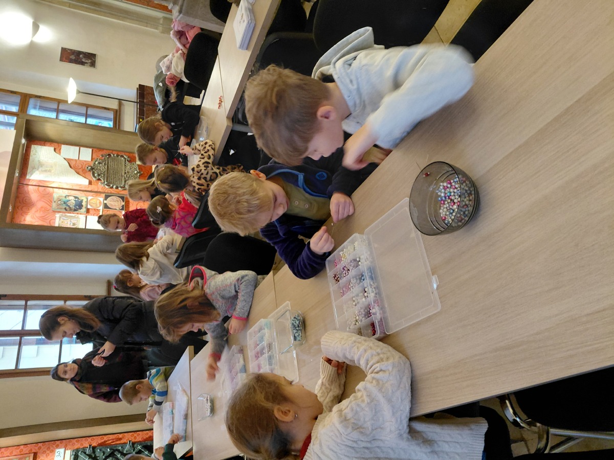 Prvňáčci dnes byli na Hrádku vyrobit si vánoční ozdobičku z korálků a prohlédnout si výstavu s názvem "Vánoce na talíři".