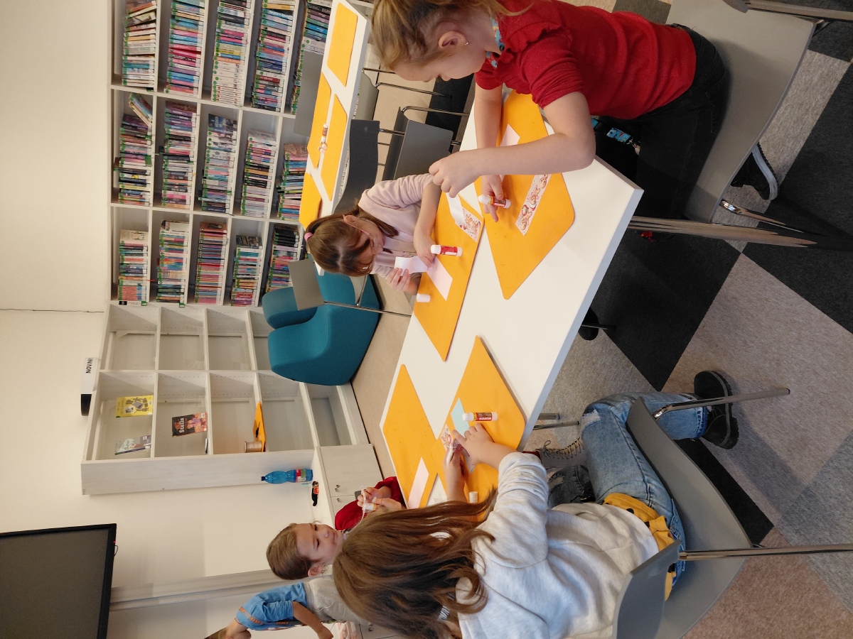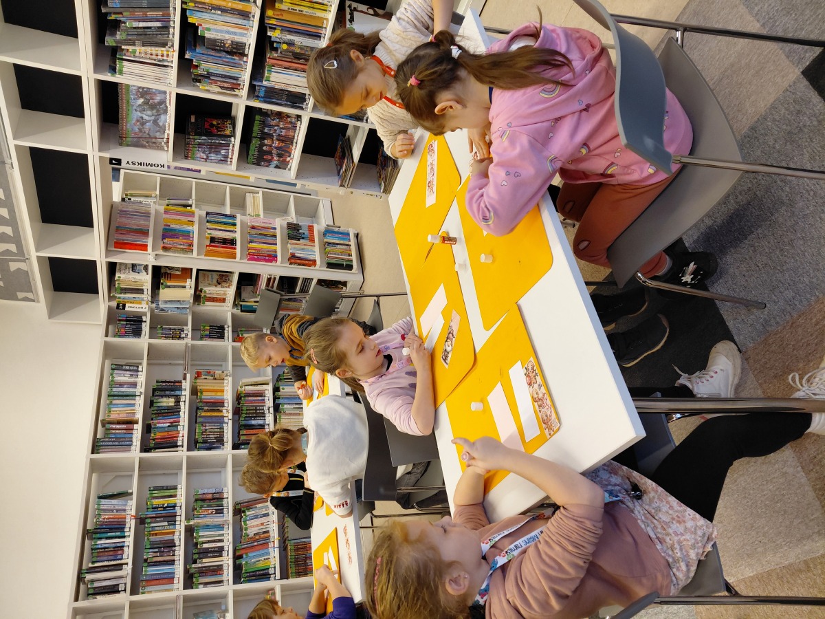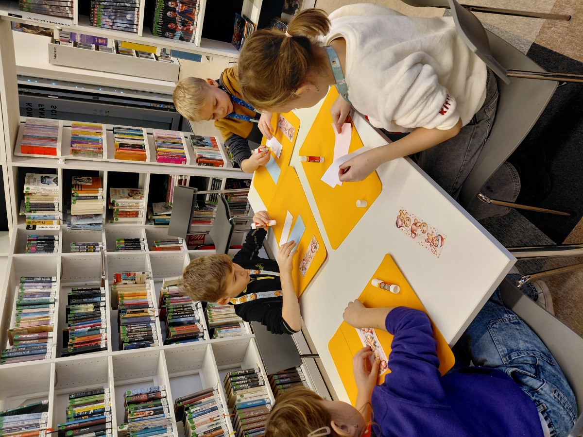 Po splnění úkolu, kdy měli prvňáčci nakreslit zimní obrázek, následovala návštěva knihovny. Děti zde nalezly vystavené své zimní obrázky a vyráběly ve vánoční dílničce.