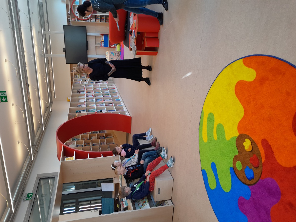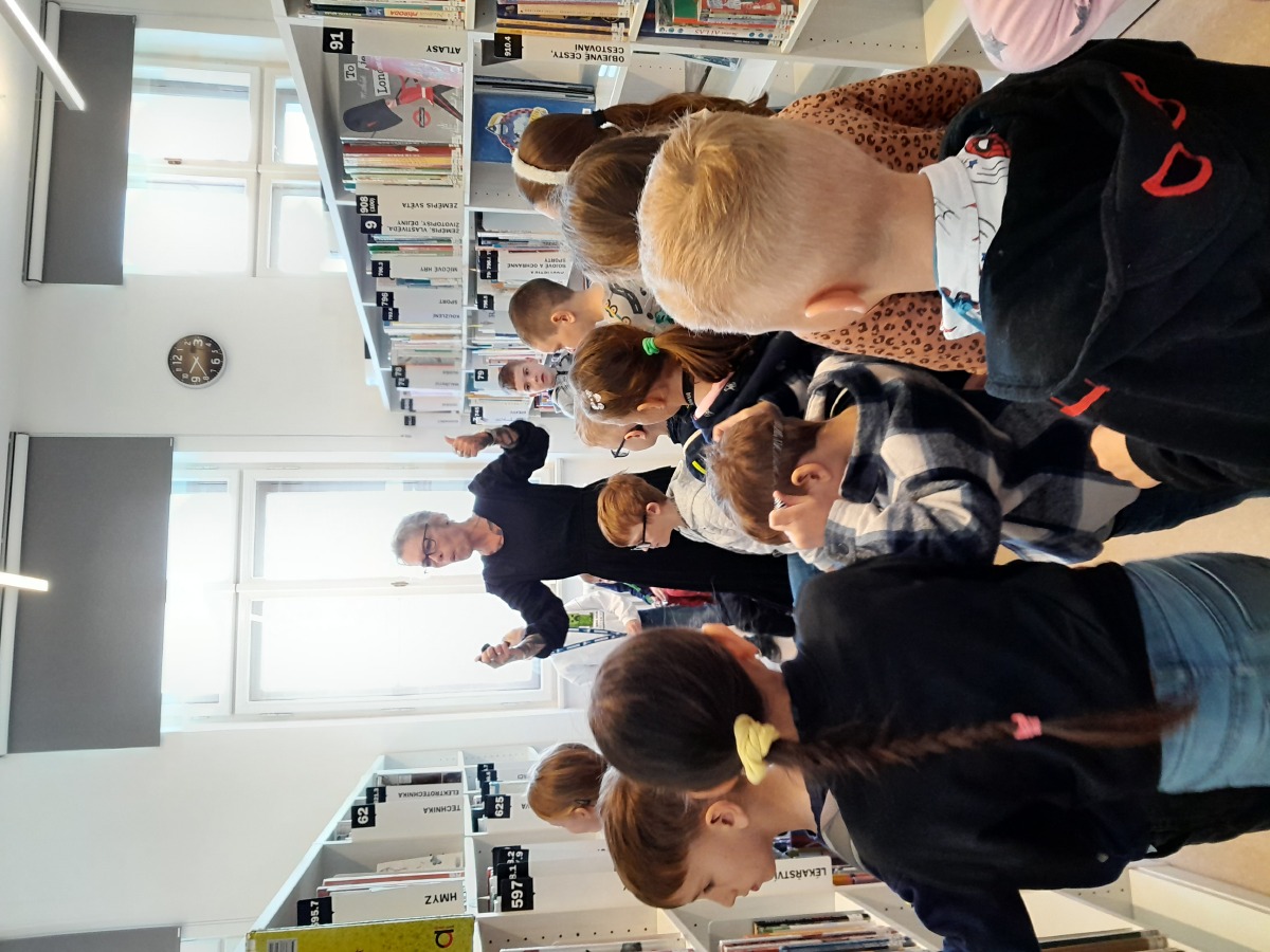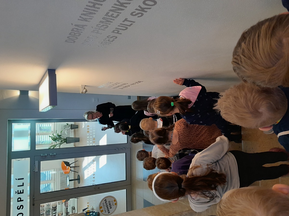 Ve středu 9.4.2025 se žáci I.A opět vydali do knihovny. Za splnění posledního úkolu (nakreslení titulní strany k jejich oblíbené knížce) měli slíbenou prohlídku celé budovy knihovny. Také se dozvěděli, jak jsou řazeny jednotlivé knížky, jaká oddělení tam mají a co všechno je možné si vypůjčit. Prohlédli si všechny prostory, dokonce se podívali do sklepa. Nejvíce je zaujal pás na vracení a třídění knih. Prohlídka se všem líbila.