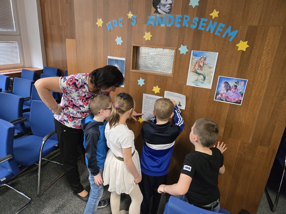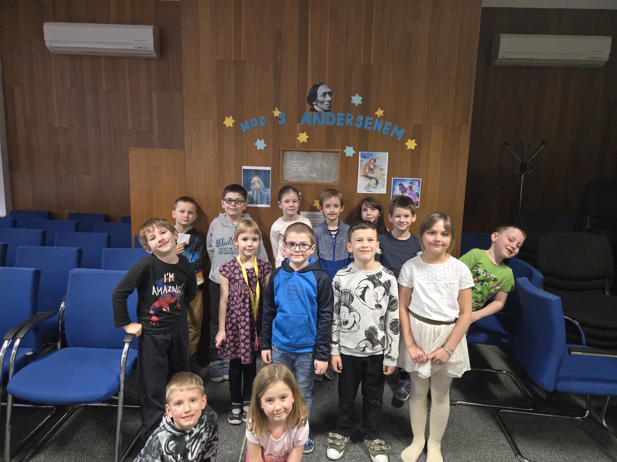 V pátek 28.3. proběhla Noc s Andersenem ve třídách 1.B a 2.C. Odpoledne jsme se sešli před třídou a hned jsme poslouchali první 2 Andersenovy pohádky- O princezně na hrášku a o Ošklivém káčátku, poté jsme se rozdělili do skupin po 4- dva prvnáčci a dva druháčci a šli do školního divadla na Andersenovou stezku, kde jsme luštili různé šifry a rébusy. V nich jsme se dozvěděli mino jiné i to, kdo Hans Christian Andersen byl. Po návratu nás čekala chutná večere v podobě pizzy. Poslechli jsme si ještě jednu pohádku- Císařovy nové šaty, zahráli malé pantomimické divadlo a nakonec jsme vyluštili ještě jednu skupinovou hru. Na úplný závěr jsme si rozdali pamětní listy a pohlednice. Tři pohledy z Noci s Andersenem jsme dokonce poslali panu prezidentovi ČR, dánskému velvyslanci a panu starostovi Kutné Hory. Ve 20:00, což je pro některé už noc, jsme se rozloučili a odešli do svých domovů.