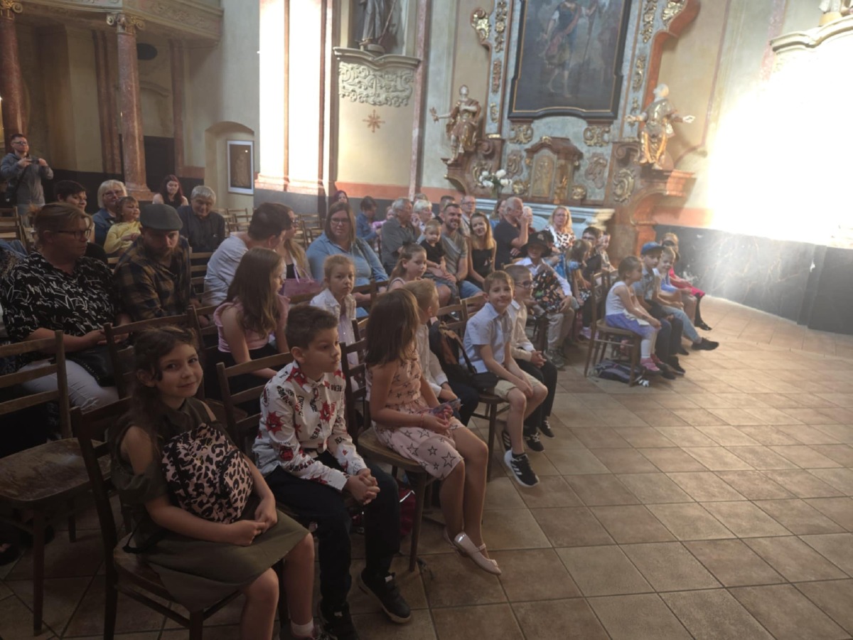 V úterý 17.6.2025 byli žáci z I.B slavnostně pasováni na čtenáře v kostele sv. Jana Nepomuckého. Celý rok všichni pilně pracovali, jejich úsilí je dovedlo k získání prvních čtenářských dovedností. Cesta to mnohdy nebyla snadná, ale všichni ji zvládli na jedničku. Po splnění všech úkolů, se prvňáčci dočkali velkého překvapení. Na čtenáře je pasoval sám rytíř z pohádky, a ještě získali dárky v podobě knihy a poukázky na roční půjčování knih v knihovně. Všichni slíbili, že ve čtení budou pokračovat i o prázdninách.