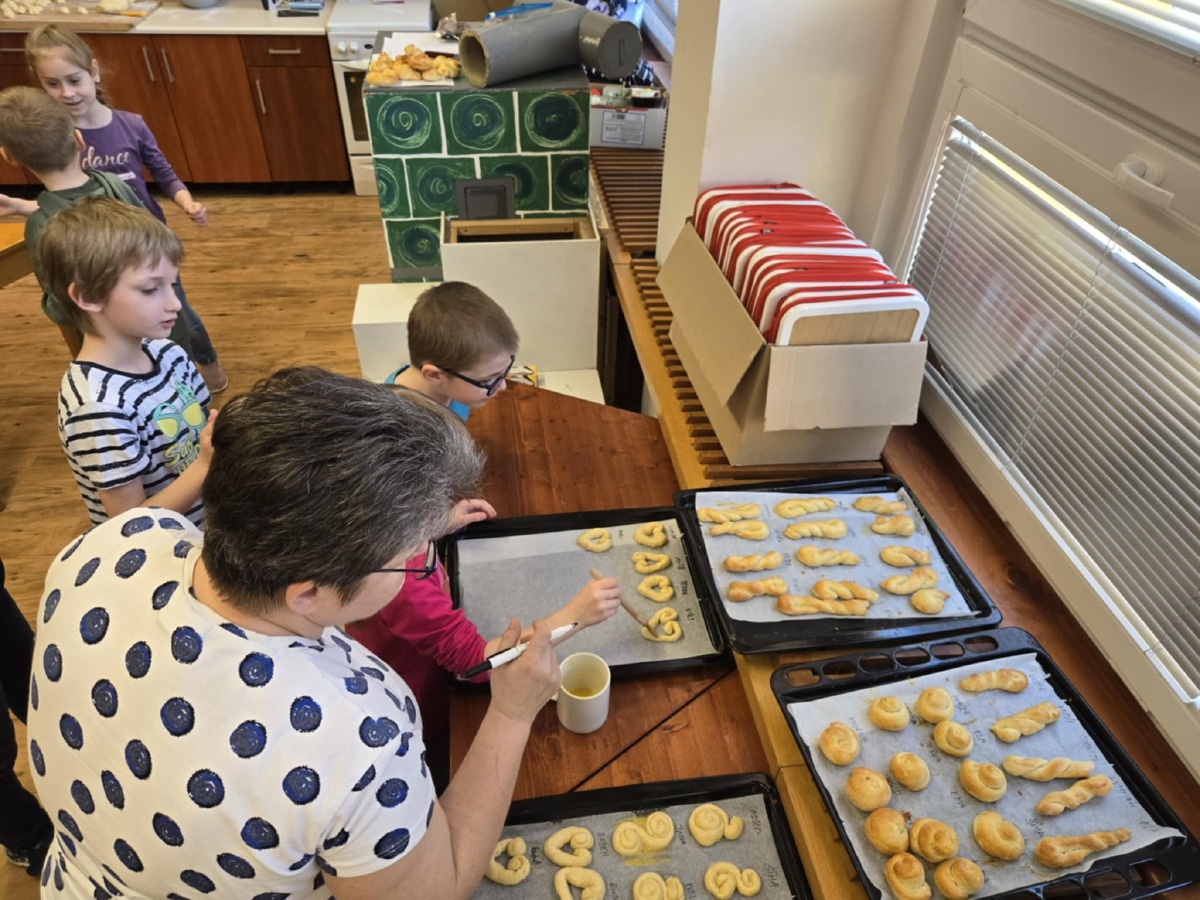V pátek 10.4. jsme pekli velikonoční jidáše s organizací Pod horami. Kromě nich jsme tvarovali těsto do podoby ptáčků a srdíček. Celá místnost i přilehlá chodba krásně voněly. Kromě pečení jsme si zahráli i velikonoční kvíz. Bonusem pro všechny bylo, že jsme si výrobky mohli po upečení sníst.
