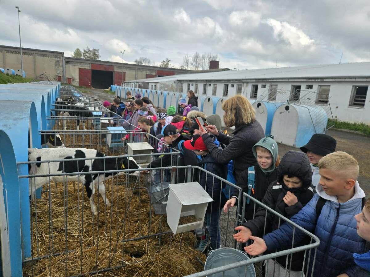 V úterý 21.4.2026 se v rámci Dne Země vydali žáci 2.B spolu s ostatními druháčky na návštěvu zemědělského družstva Agro Podlesí v Červených Janovicích. Tam se specializují na hlavně na chov krav, telat i býčků, výrobu mléka a na pěstování obilovin. Děti si prošly velkou část areálu, prohlédly si jednotlivé budovy s ustájenými zvířaty. Nejvíce se jim líbila telátka, která se nechala i pohladit. Všichni se dozvěděli spoustu nových informací o chovu zvířat, o práci v zemědělském družstvu a technice, kterou zde používají. Byl to nevšední zážitek, který jsme zakončili nákupem mléčných výrobků ve firemní prodejně. I přes mírnou nepřízeň počasí se exkurze velmi vydařila.