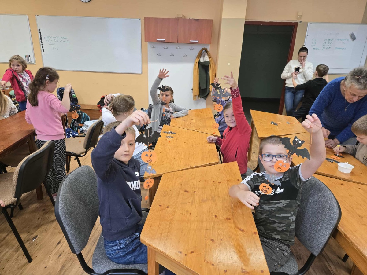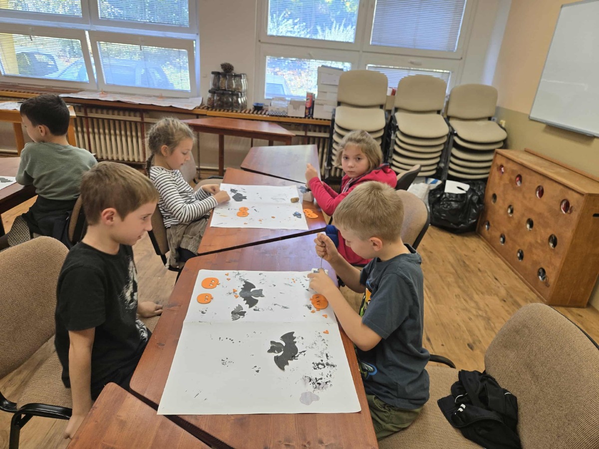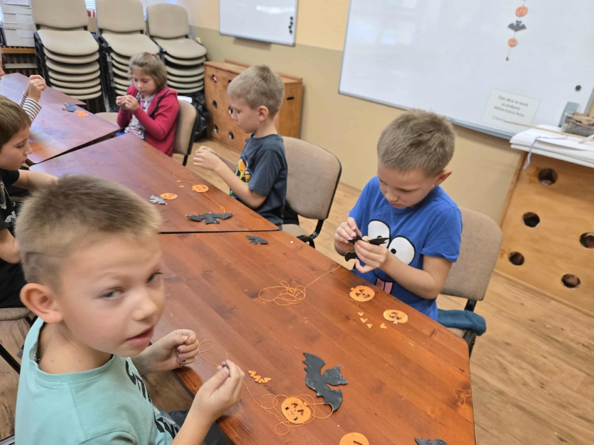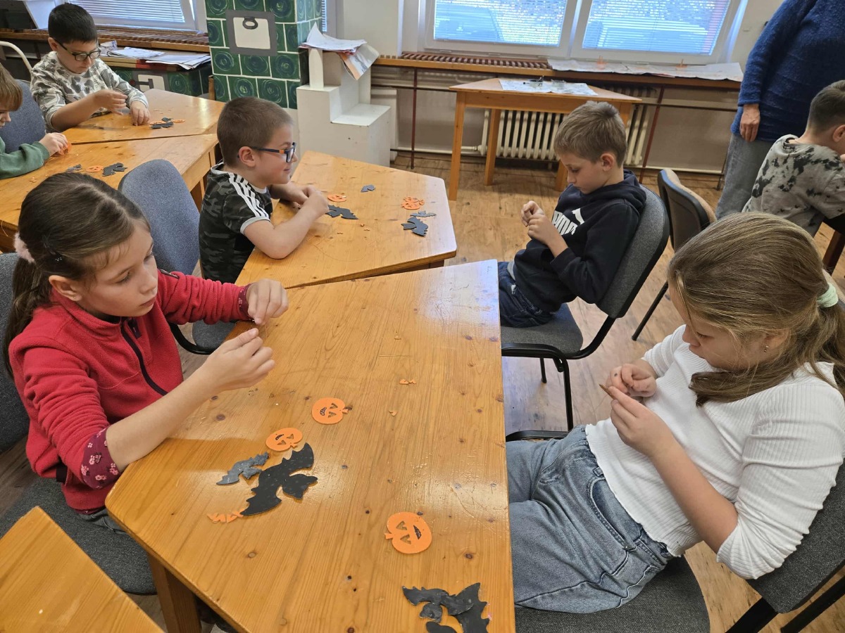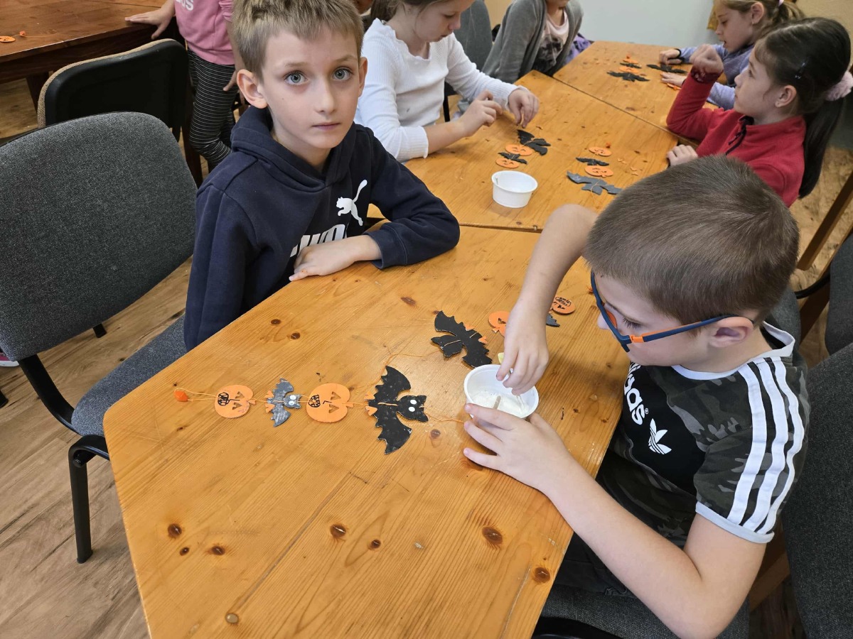 Halloween se blíží, proto jsme si v halloweenské dílničce vyrobili krásné strašidelné závěsy. Potrénovali jsme si nejen malování, ale také provlékání provázku, kterému předcházelo jeho navlékání na jehlu. To byl asi ten nejtěžší úkol z celého programu, nakonec se to všem (někomu s menší pomocí) podařilo. Děkujeme organizaci POD HORAMI za realizaci dílničky.