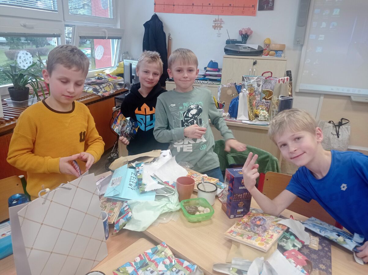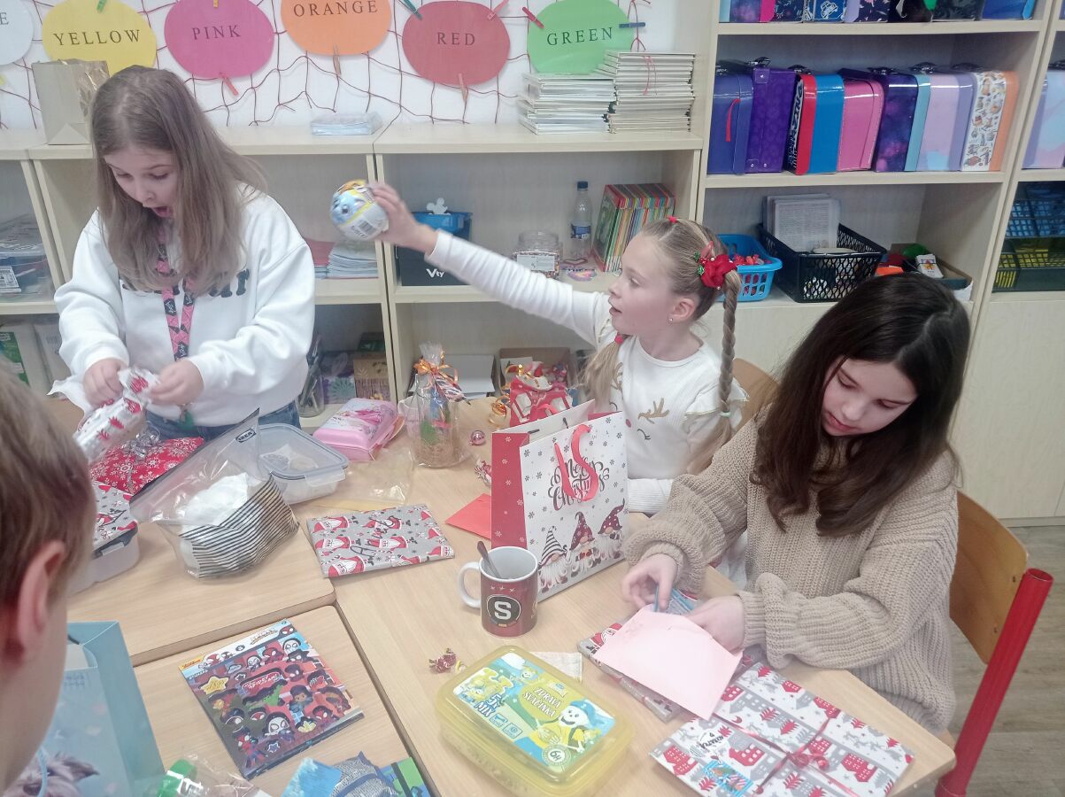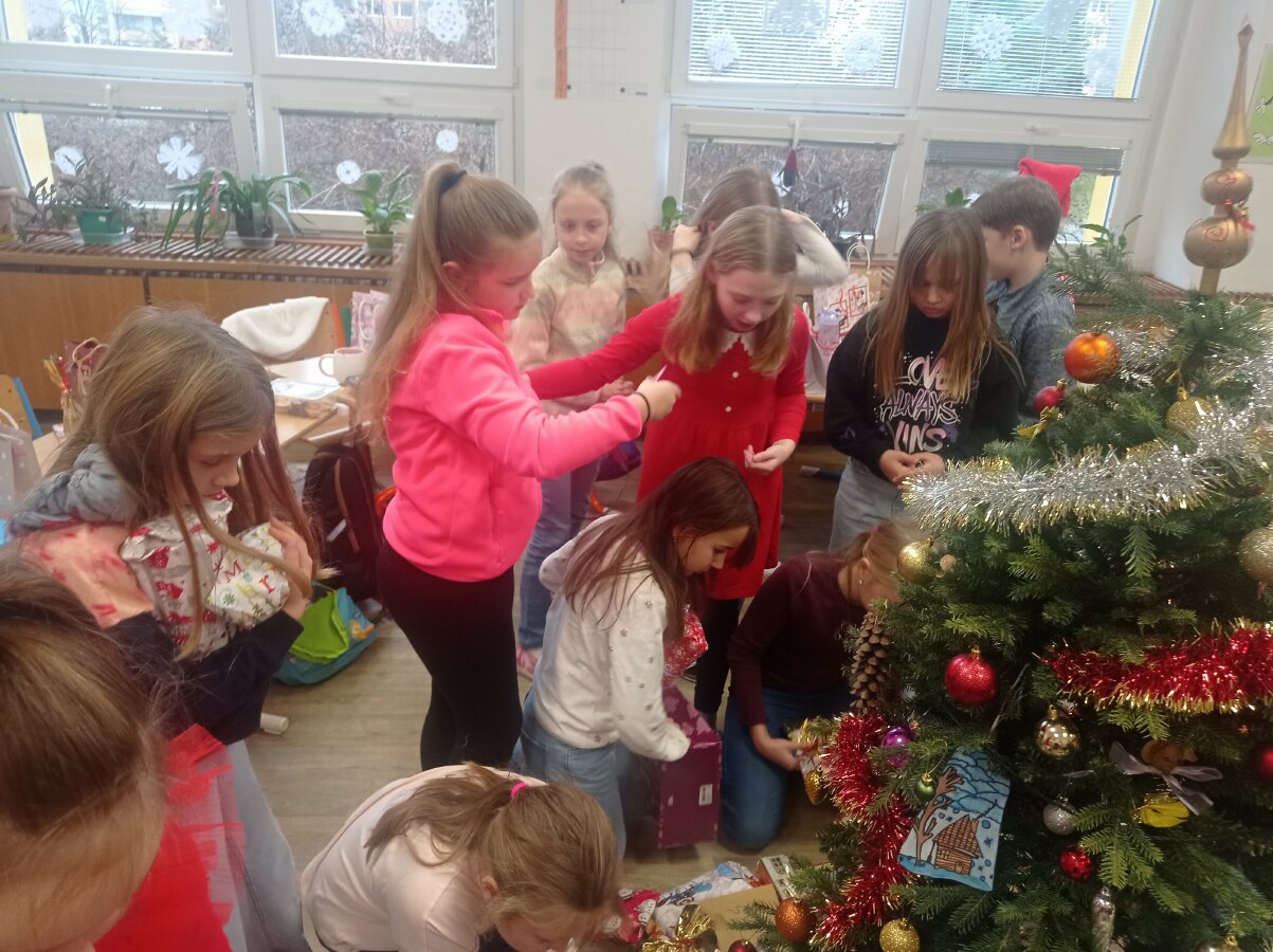 Poslední školní den před vánočními svátky byl tradičně věnován samotným třídám. My jsme si ráno vyjeli ještě zaplavat a po návratu do školy jsme si zahráli na Ježíšky a nadělili si pod stromeček spoustu dárečků. Potom jsme si udělali čaj a dali si k němu cukroví a vánoční pohádku. Potom už přišlo rozbalování!!! ![]()