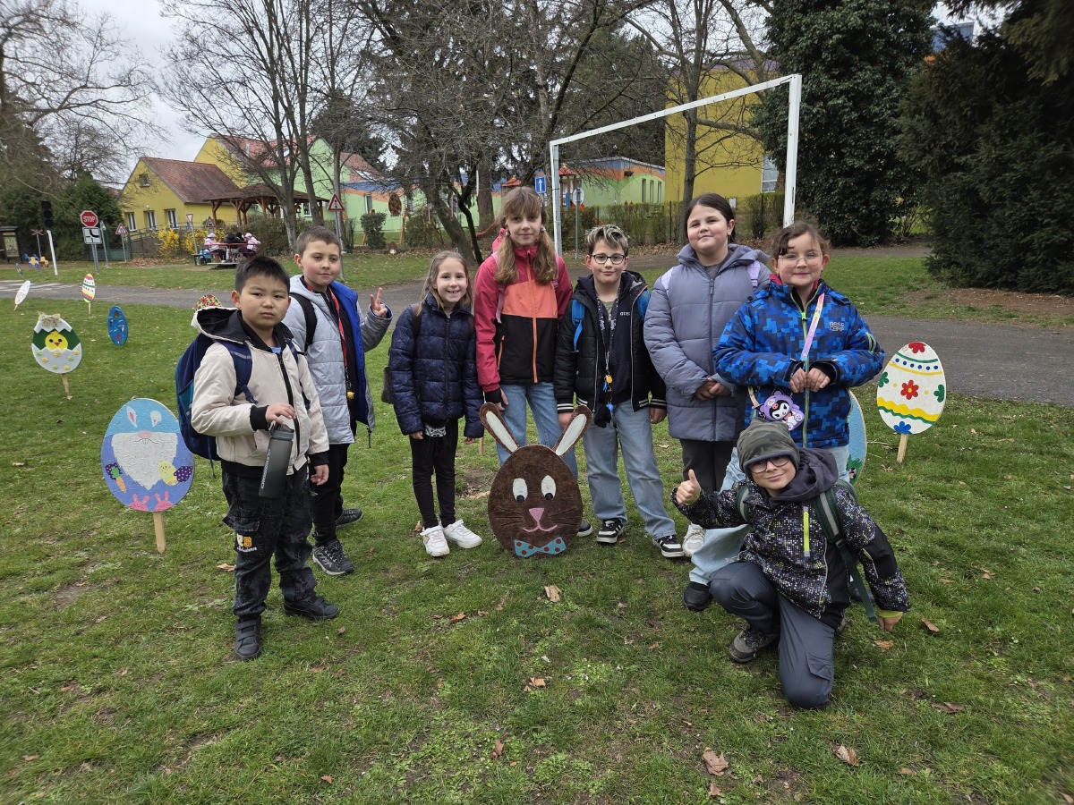 Velikonoce se blíží a naše třída se na ně těší. Při dnešním projektovém dni jsme nejprve ve skupinách vypracovávali různé úkoly týkající se velikonočních svátků. Dále jsme se vydali do zahrad okolo Domu dětí a mládeže, kde jsme si prohlédli krásná vajíčka ozdobená nejen žáky naší školy. Na zadní straně některých vajíček byly i kvízové otázky, na které jsme úspěšně odpovídali. Po krátké přestávce na občerstvení jsme se vrátili do školy. Celý projekt jsme si užili.