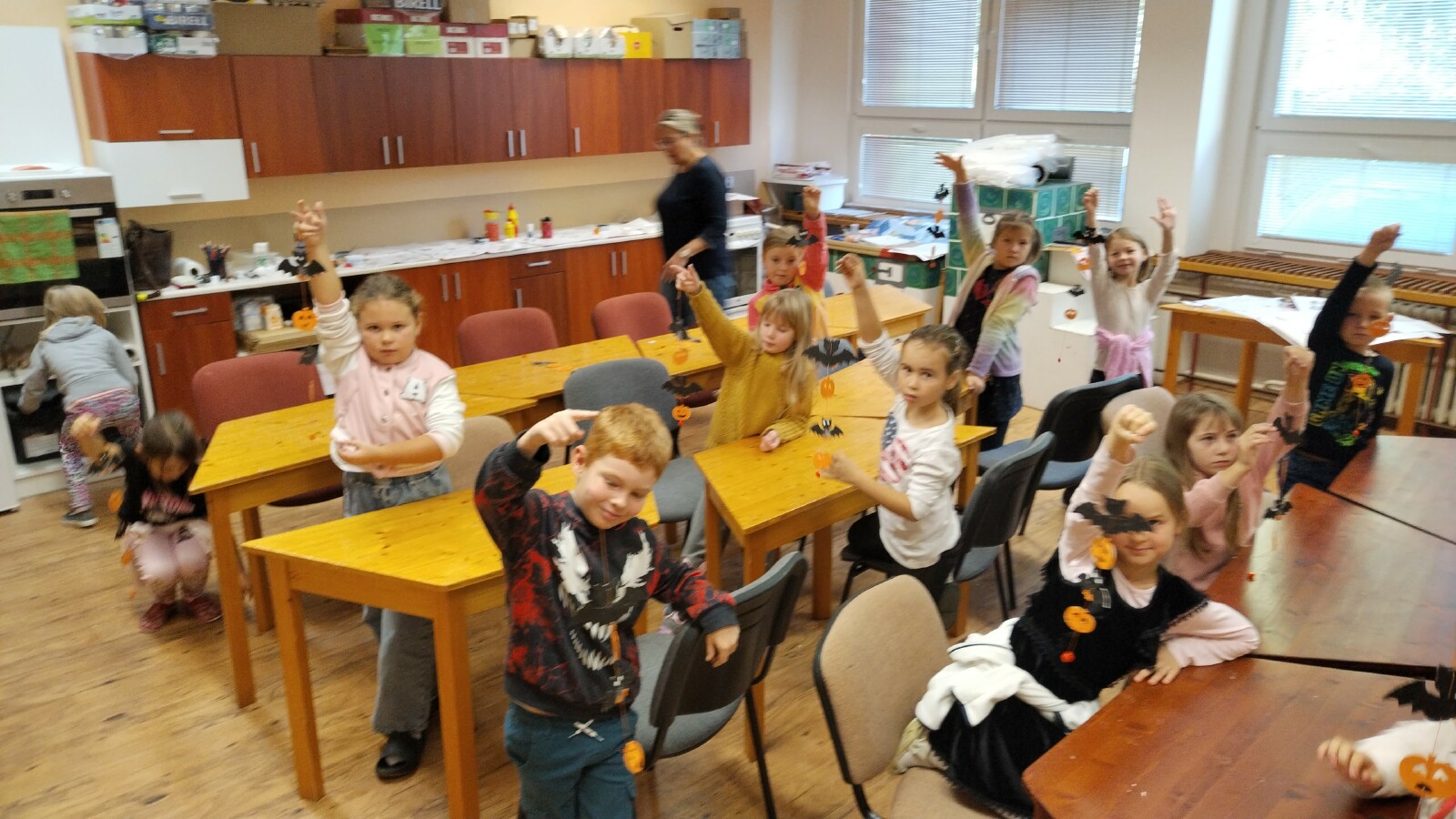 V pondělí 20.10. jsme šli vyrábět krásné strašidelné závěsy na halloween. který se nám blíží. Trénovali jsme malování, navlékání, uzlíky a všem vznikl krásný závěs. Děti měly z celé práce velikou radost. děkujeme POD HORAMI za realizaci dílničky.