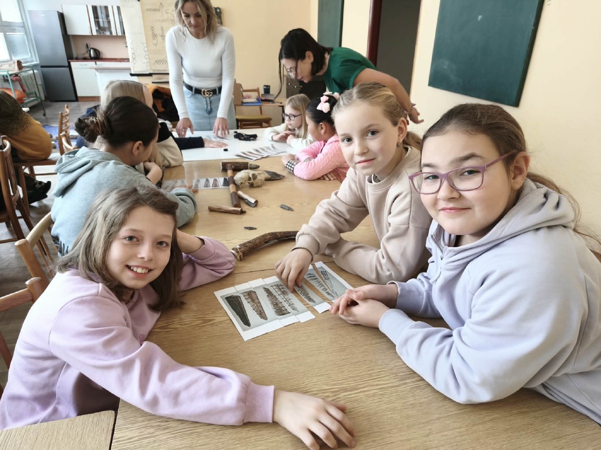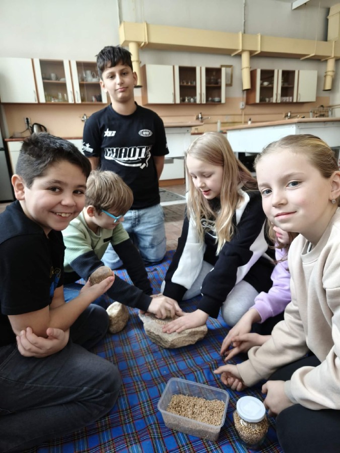 Následně se rozdělily do skupinek a vyzkoušely si různé činnosti. Jedna skupina tloukla obilí na mouku, ze které se pekl chléb. Další skládala hliněné nádoby z několika částí a poznávala, jak náročná byla výroba keramiky. Jiná skupina si mohla prohlédnout lebku srnky, pravěké nástroje a zbraně a dozvěděla se, k čemu sloužily.