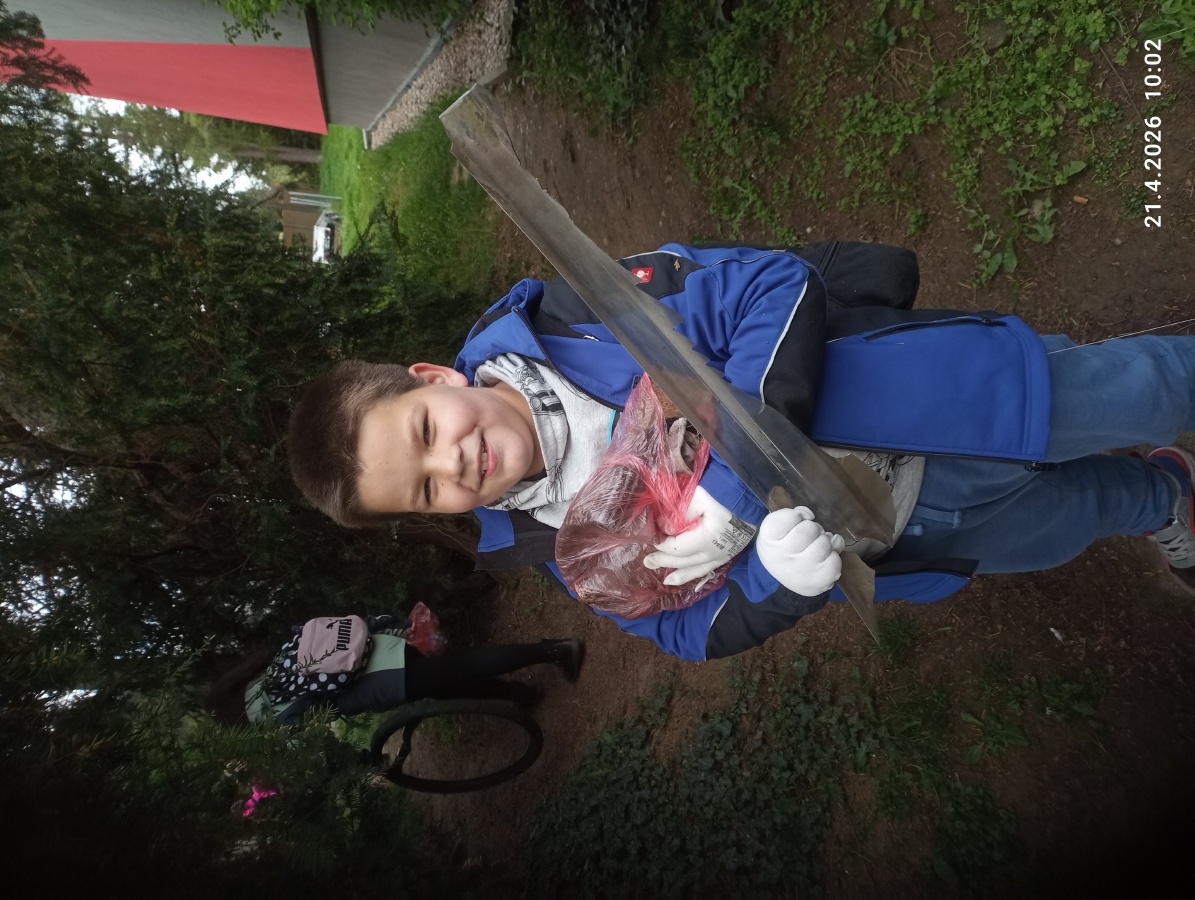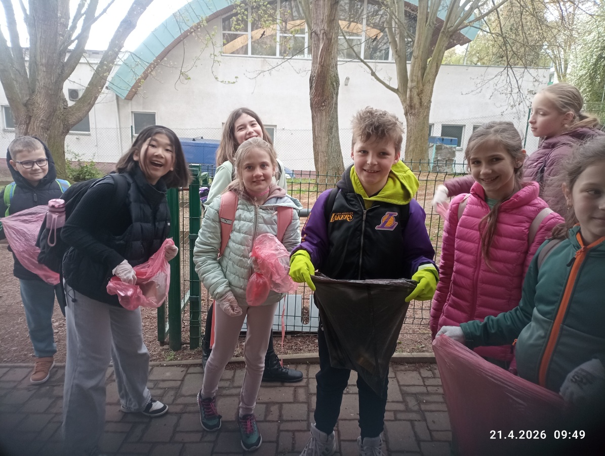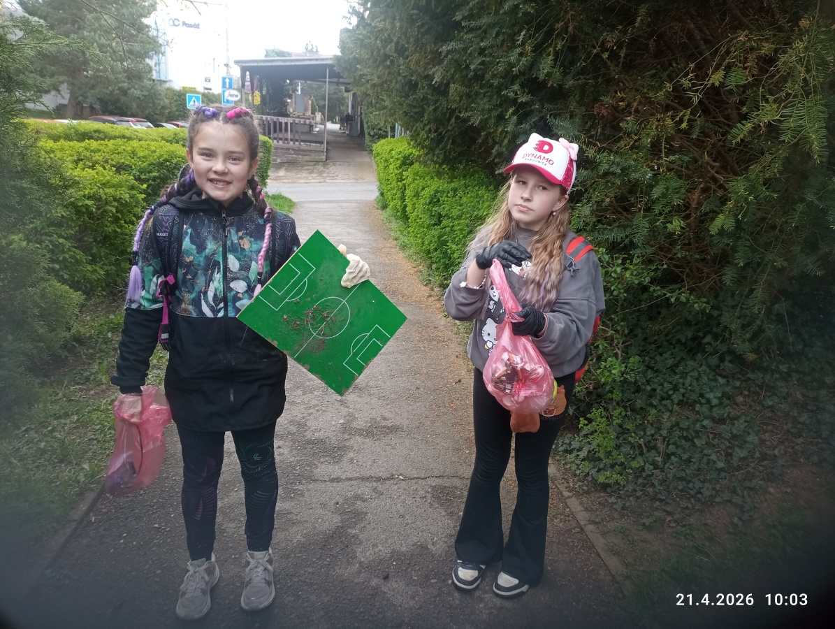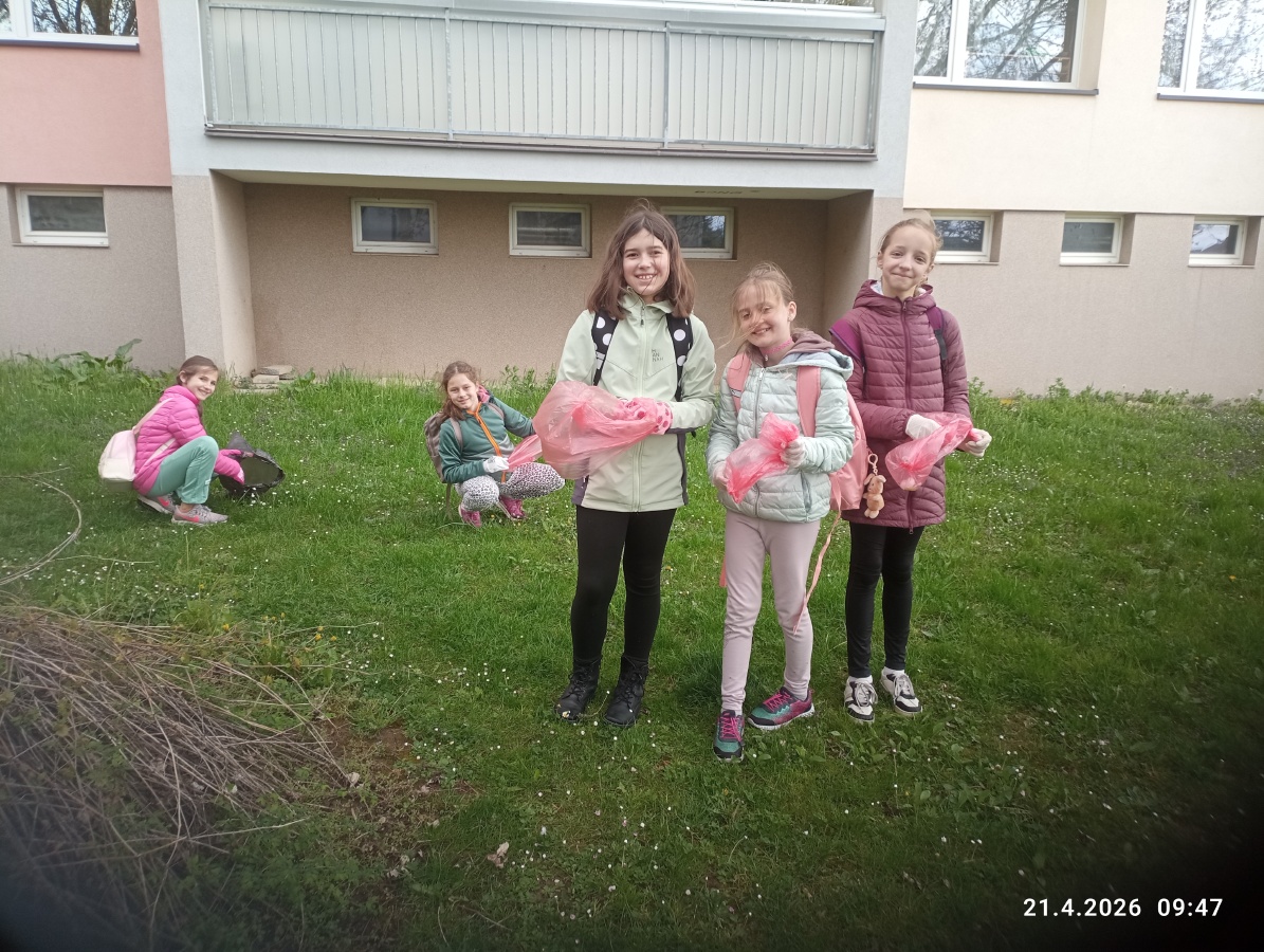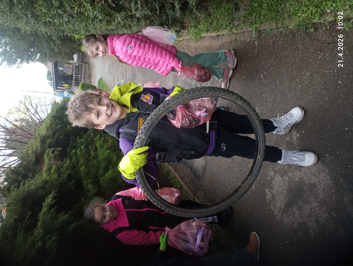Žáci také uklízeli okolí školy. Děti sbíraly odpadky s velkým nadšením a přispěly ke krásnějšímu prostředí v okolí školy.
