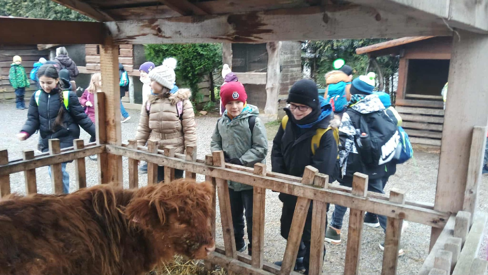 Děti si nejdříve prošly areál venku a pohladily si zvířátka ( kozu, telátko, oslíka,...).