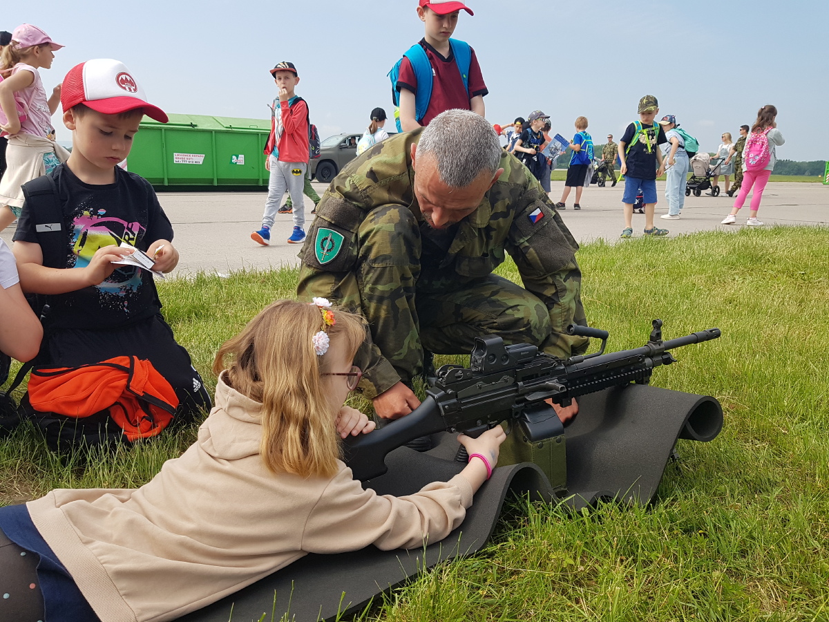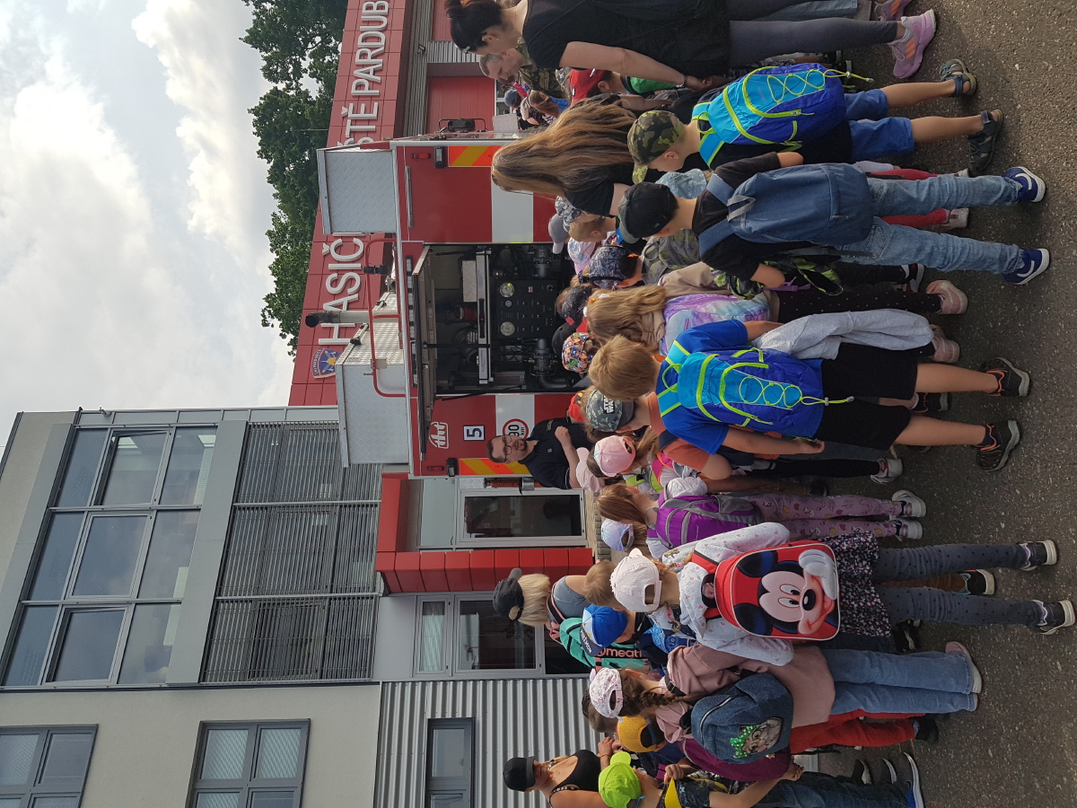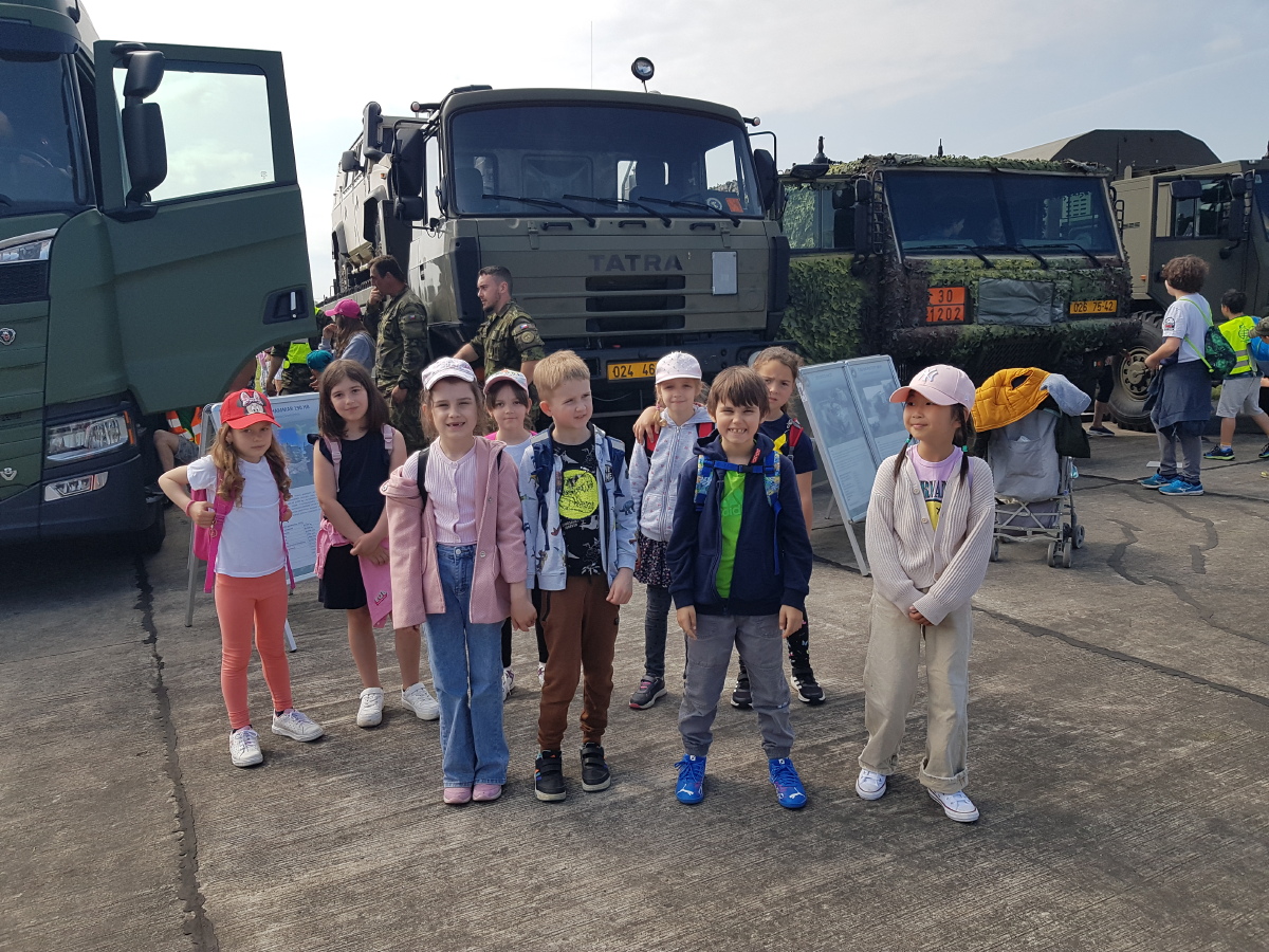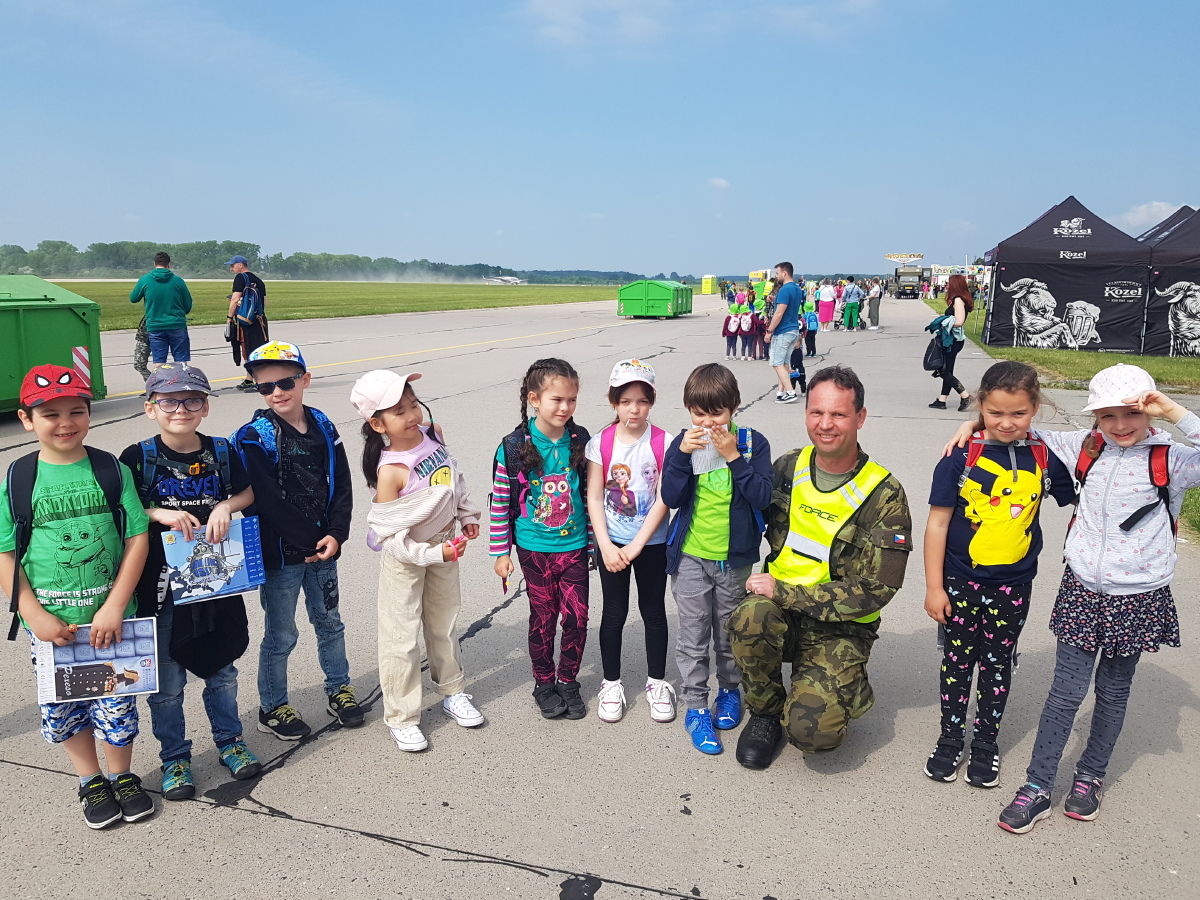 V pátek 26. 5. se vypravily první třídy na výlet do Pardubic na Dětský den na letiště. Hned po příjezdu se nás ujali vojáci, kteří nás provedli celým letištěm, děti si prohlédly a mohly nastoupit do hasičských aut i obrněných náklaďáků, vyzkoušely si střelbu z pušek, nechyběly ani letecké ukázky stíhaček a vzlet vrtulníku. Domů si odvážely i spoustu dárečků včetně omalovánek, vystřihovánek apod.