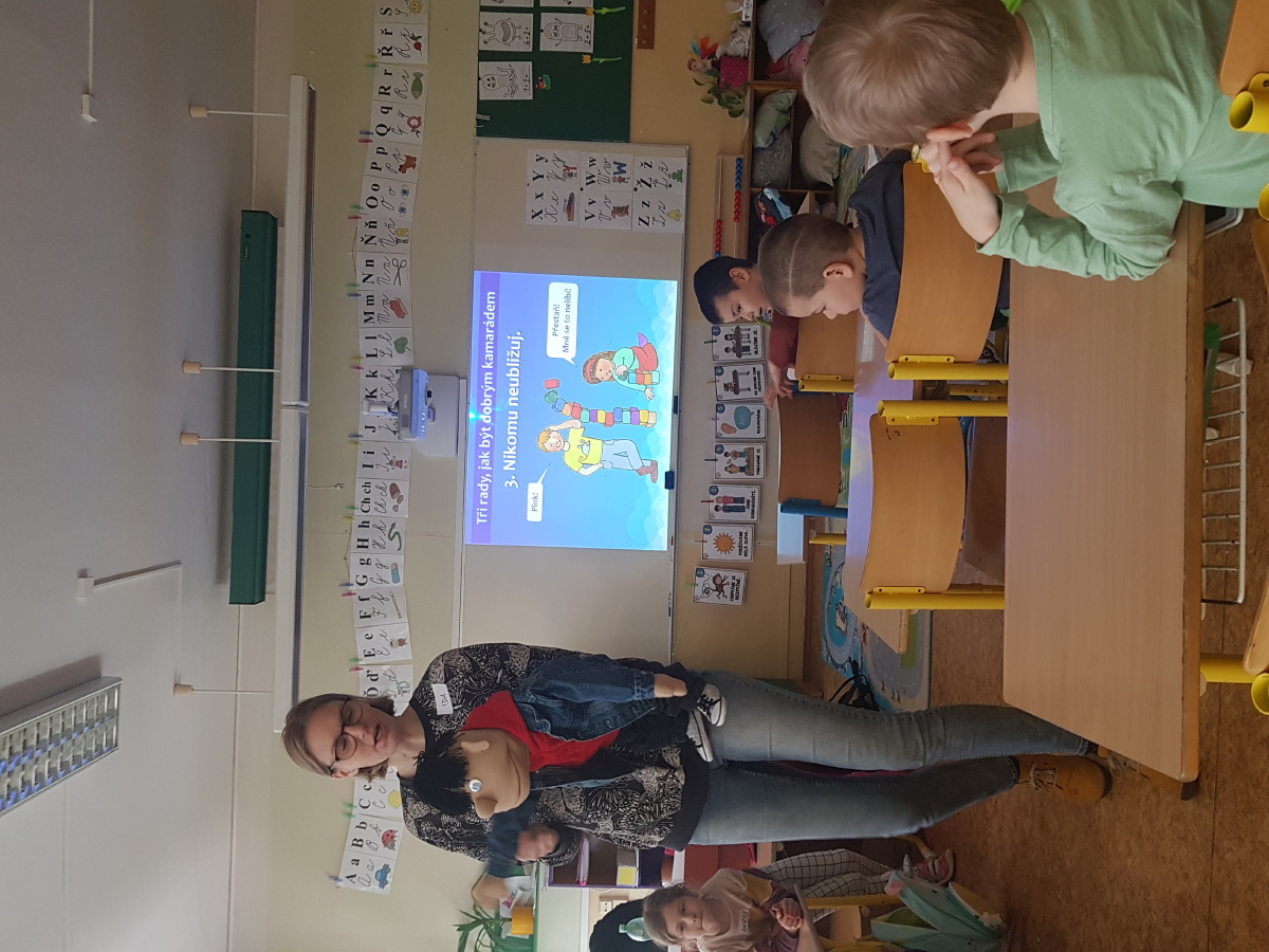 V 2. půlce dne nás navštívil v rámci Etických dílen maňásek Ludvík a učil děti, jak se k sobě mají chovat a být kamarády. Děti si s ním zazpívaly písničku o kamarádství a natrénovaly si, jak říct ne, když jim něco není příjemné.