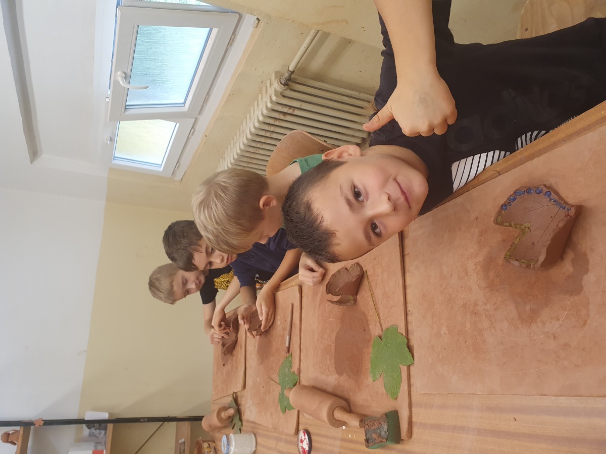 V rámci VV a PČ navštívili žáci z 2. B školní keramicou dílnu. Zde si vyzkoušeli práci s keramickou hlínou. Vyrobili si podzimní misky z obtisknutých listů javoru. Misky si dozdobili sklíčky a po naglazování a vypálení si své první keramické výrobky odnesou hrdě domů. Všichni byli moc hodní a šikovní, práce se všem bez výjimky povedla, vzniklo 21 krásných keramických mističek.