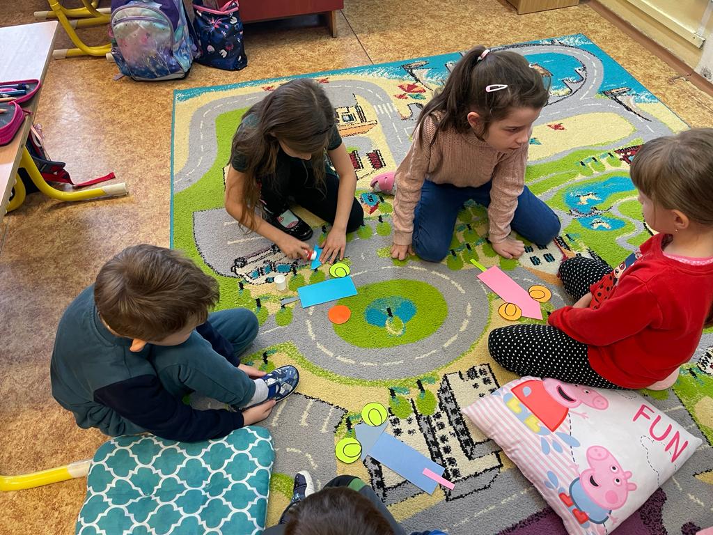 Ve čtvrtek nás ve třídě navštívili předškoláci z Mateřské školky Sedmikráska. Děti se společně naučily 2 říkanky - O jaru a O myšce, procvičily si společně písmena, počítání i geometrické tvary. Předškoláci si vyrobili a odnesli domů na památku myšky, které s pomocí našich prvňáčků poskládali a slepili z geometrických tvarů
