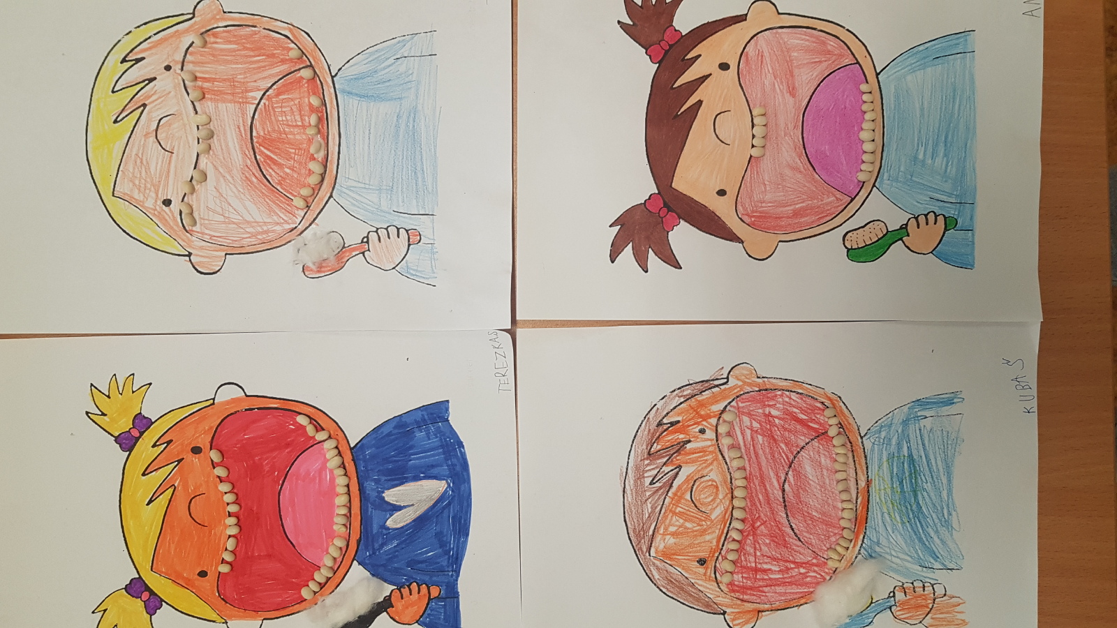 Ve středu jsme si udělali v 1. B projektový den s preventivním programem Veselé zoubky. Povídali jsme si o tom, jaké potraviny jsou pro zoubky zdravé, jak se mají zuby správně čistit. Podívali jsme se na video, jak o své zoubky pečuje Hurvínek a vyrobili jsme obrázky se zuby i zubní pastou:)