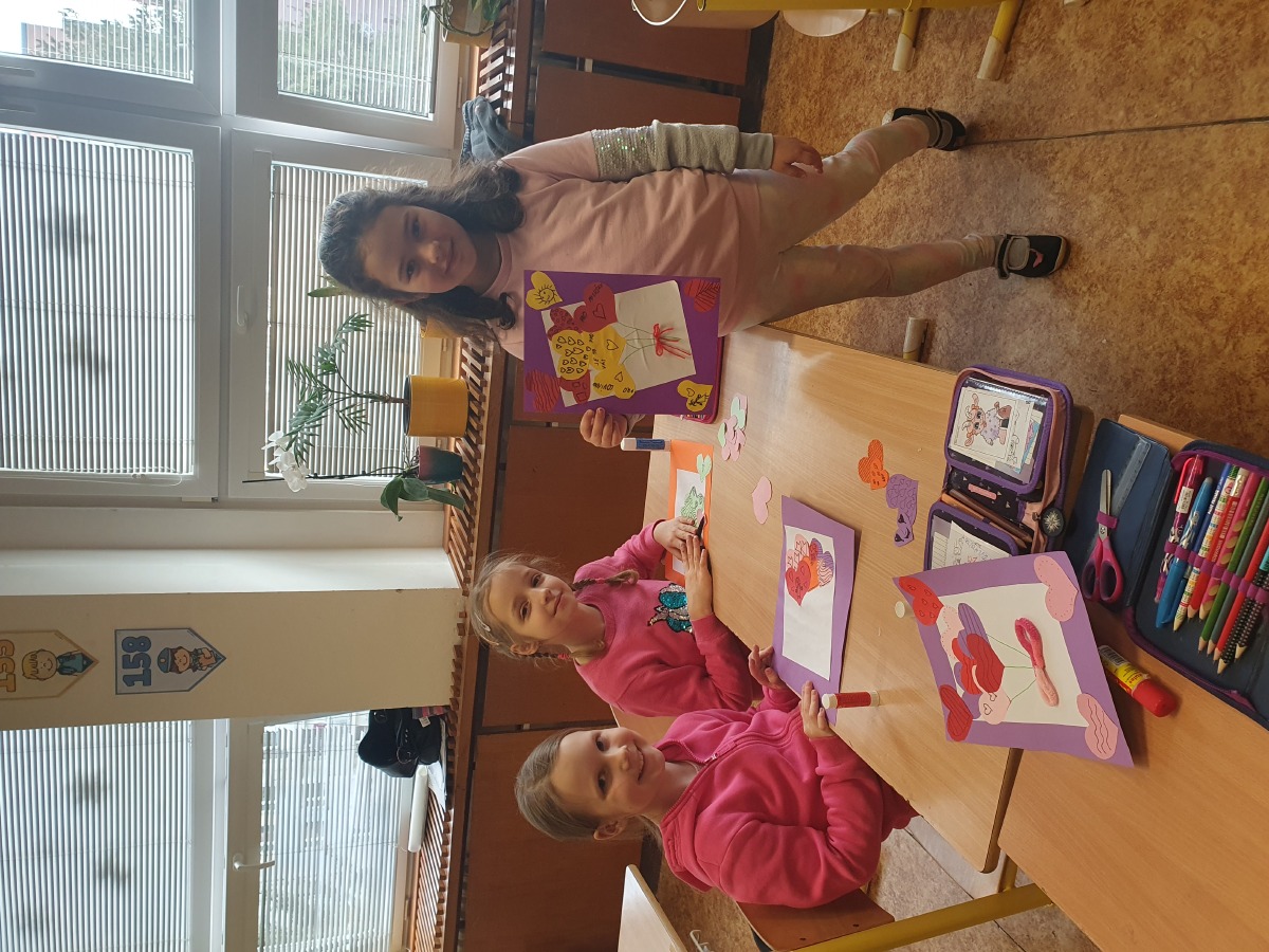 Dnešní valentýnský den si děti moc užily. V první části dne si byly zabruslit. Druhou část dne pak věnovaly tvorbě valentýnských přáníček.