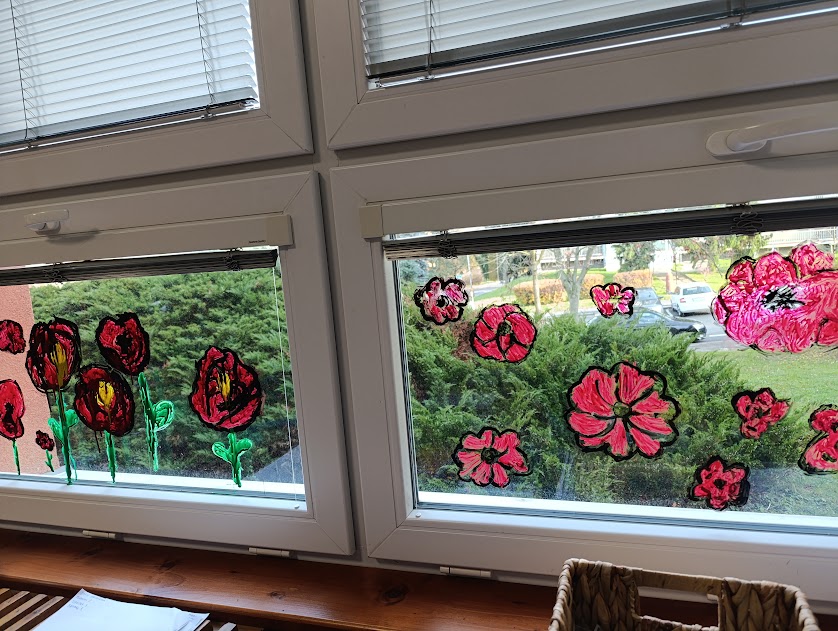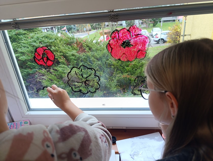 Na závěr si žáci tematicky vyzdobili okna třídy svými vlastními malbami s motivem máků, aby tak vzdali hold všem, kteří bojovali za svobodu a mír.