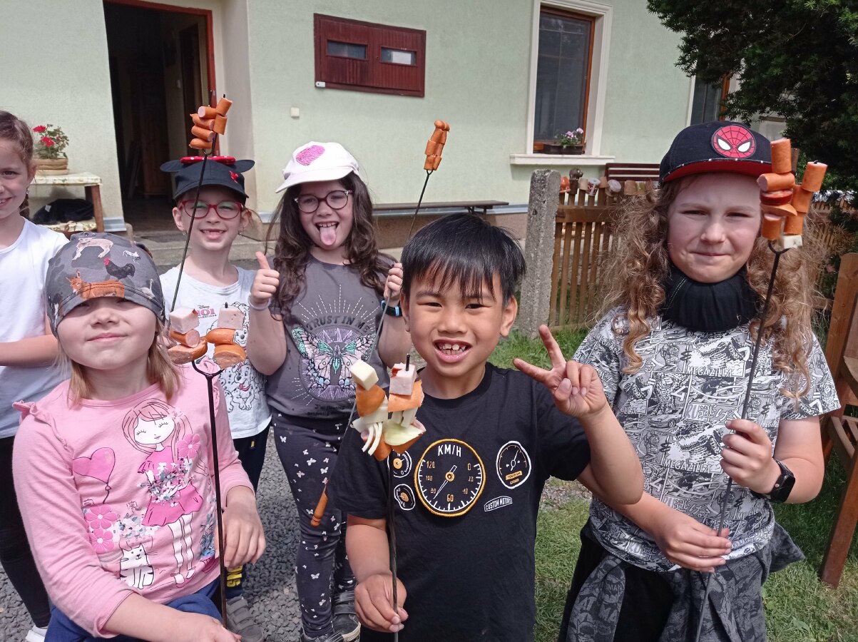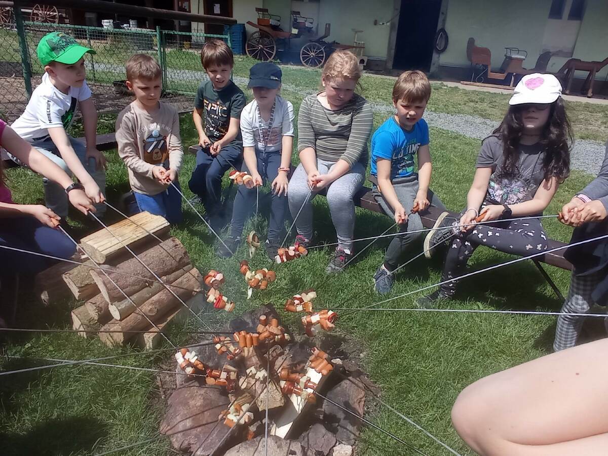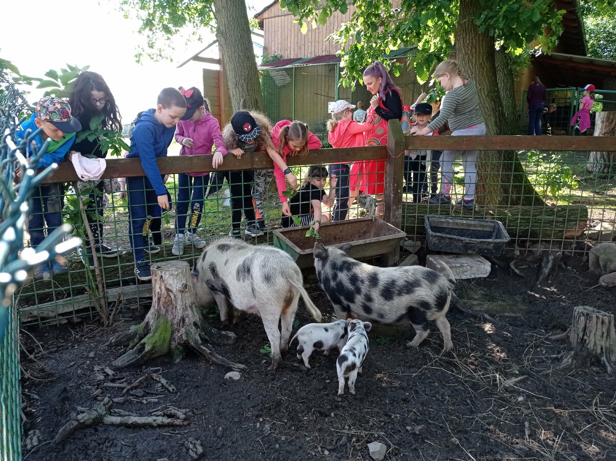 U babičky na dvorečku jsme poznávali hospodářská zvířata (ovce, kozy, prasátko, králíky, slepice, husy, kachny, kuřátka, kachňátka), nechyběla ani morčátka či nutrie. Opodál jsme viděli také lamy a oslíka. Téměř všechna zvířátka jsme si mohli pohladit, ale také jsme se učili o ně postarat.