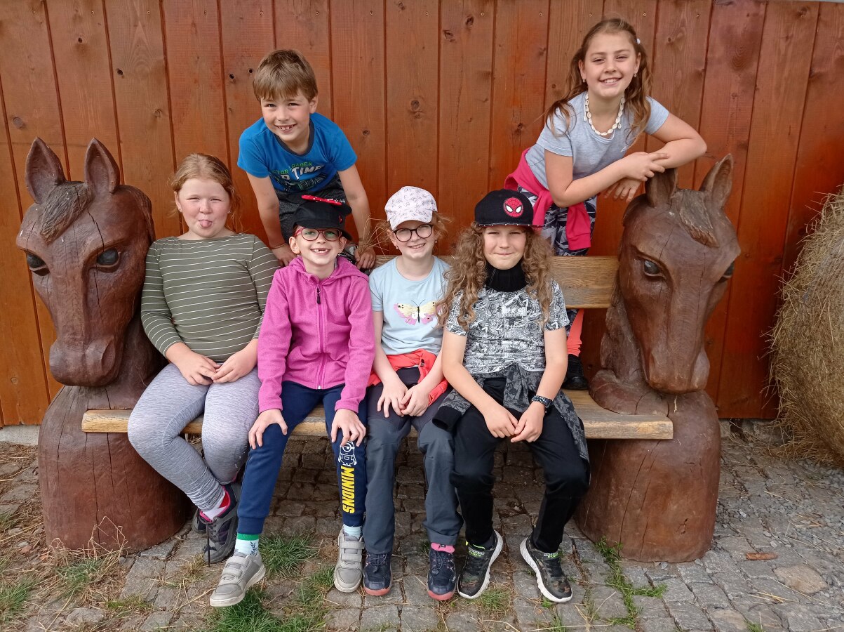 Hned po příjezdu se nás ujala báječná paní průvodkyně. Nejdříve nás vzala do lesa a na pastviny. Cestou jsme se seznámili s pštrosy Nandu, tzv. "Nanučky". Potom už nás čekali poníci, koně, prasátka, bažanti, srnky, daňci i muflon. Svou krásou a křikem se pochlubil také páv.