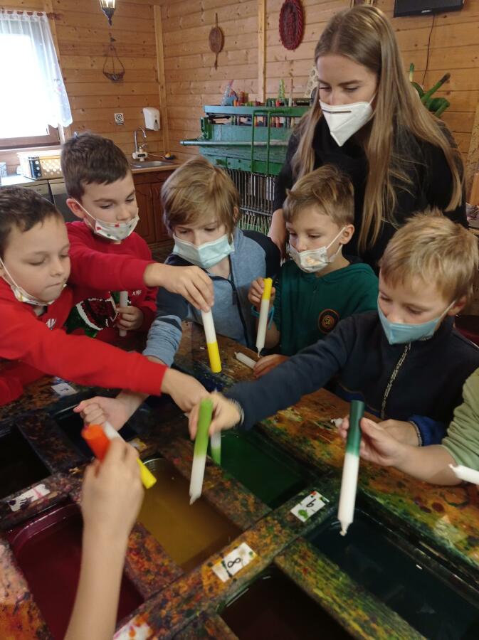 Tam nás čekal bohatý program. Naučili jsme se barvit svíčky, vykrojili jsme si glycerinové mýdlo a naplnili balíček vonné koupelové soli. ![]()