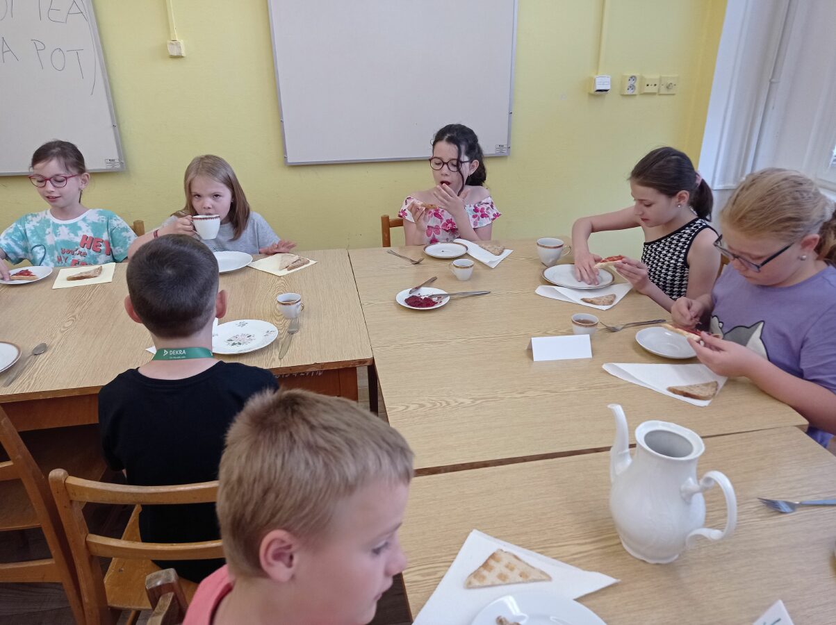 V angličtině jsme se celý měsíc učili o jídle a pití. A tak jsme své poznatky vyzkoušeli i prakticky a užili si pravou anglickou snídani. Samozřejmě, že nechyběly tousty s džemem, cornflakesy s mlékem, párky, vajíčka se šunkou a se slaninou, fazole...