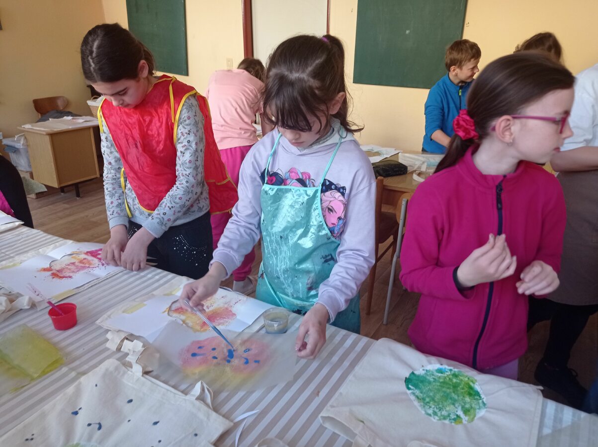 Připomněli jsme si, co znamenají pojmy ekologie a recyklace. Potom jsme si vyrobili krásnou eko tašku a na závěr dne jsme poklidili kolem naší školy. ![]()