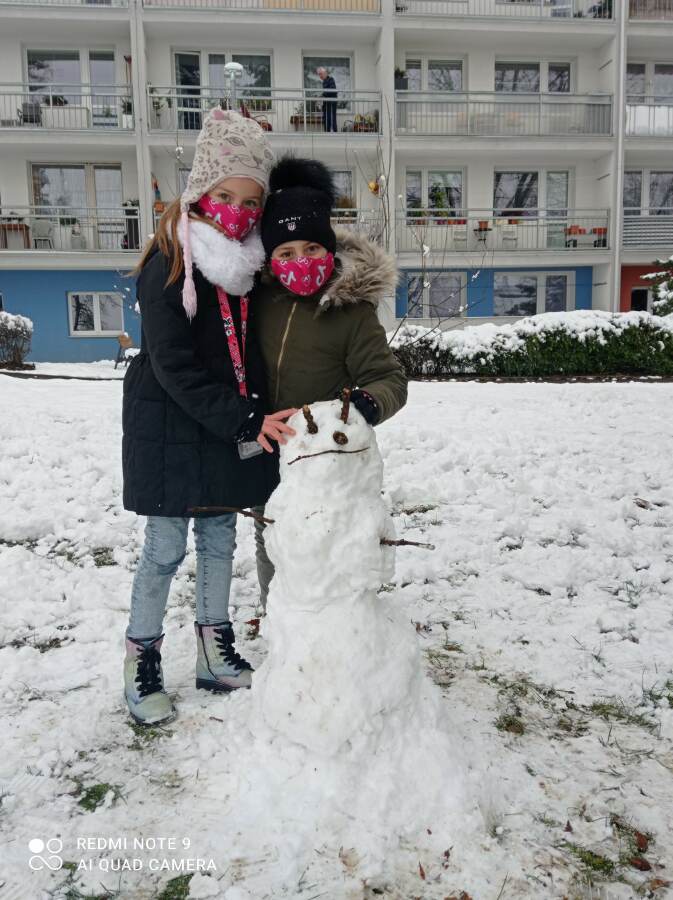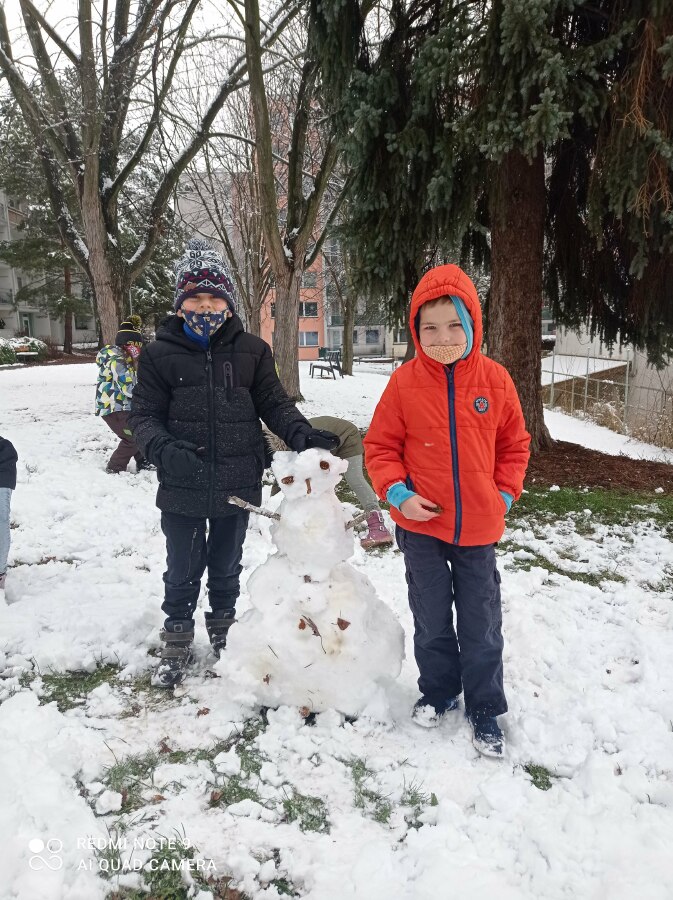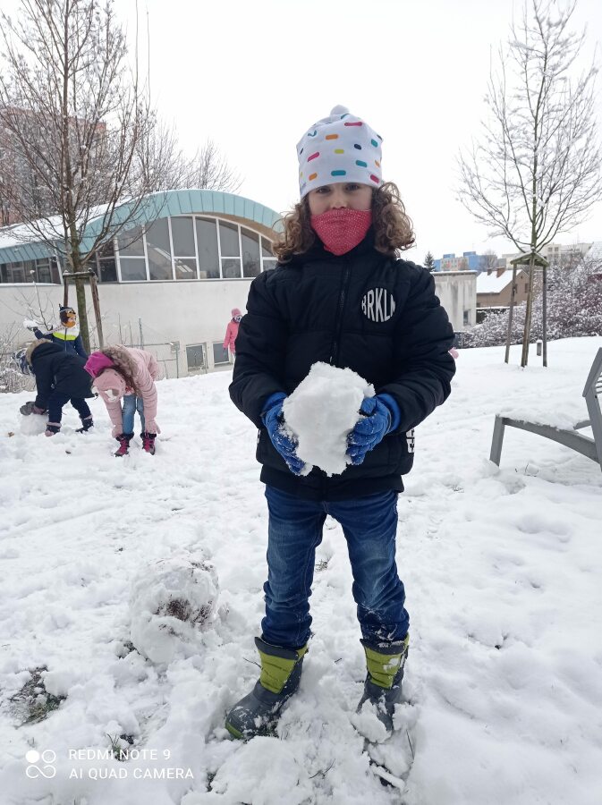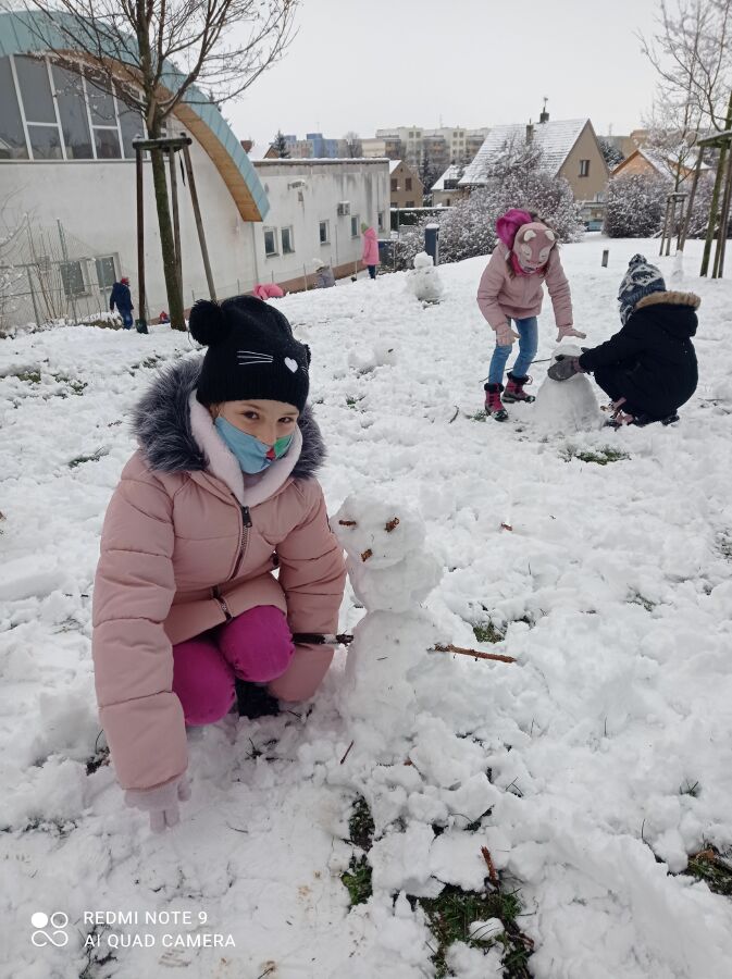 Nejprve jsme hledali ve sněhu stopy a snažili se určit komu asi patří. A pak už vypuklo to správné řádění! Děti se pustily i do stavění sněhuláků, kteří se jim náramně povedli.
