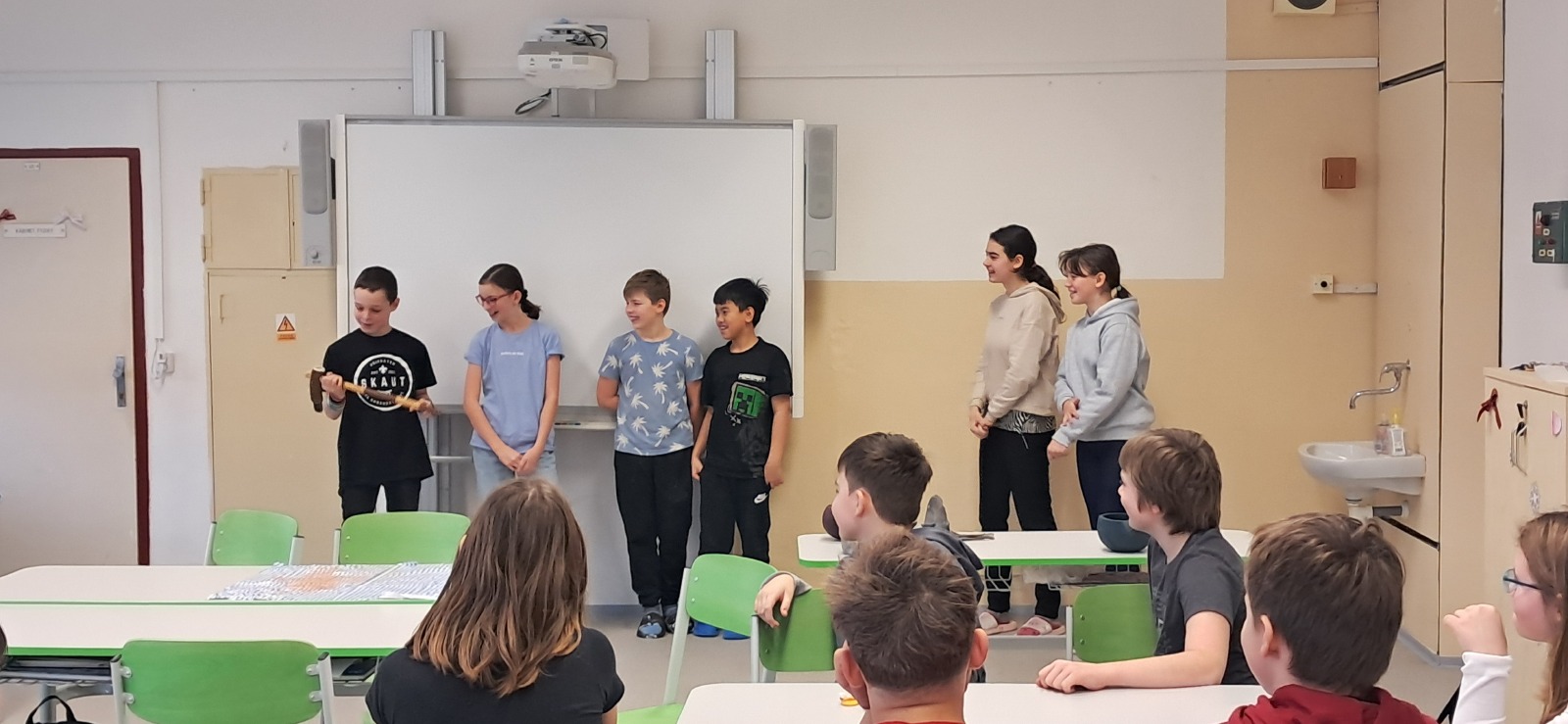 Na závěr si každá skupinka připravila teleshoppingovou scénku, kde se snažili ostatním prodat co nejlepším možným způsobem vybraný pravěký předmět. Vzdělávací program Dny v pravěku se žákům líbil.
