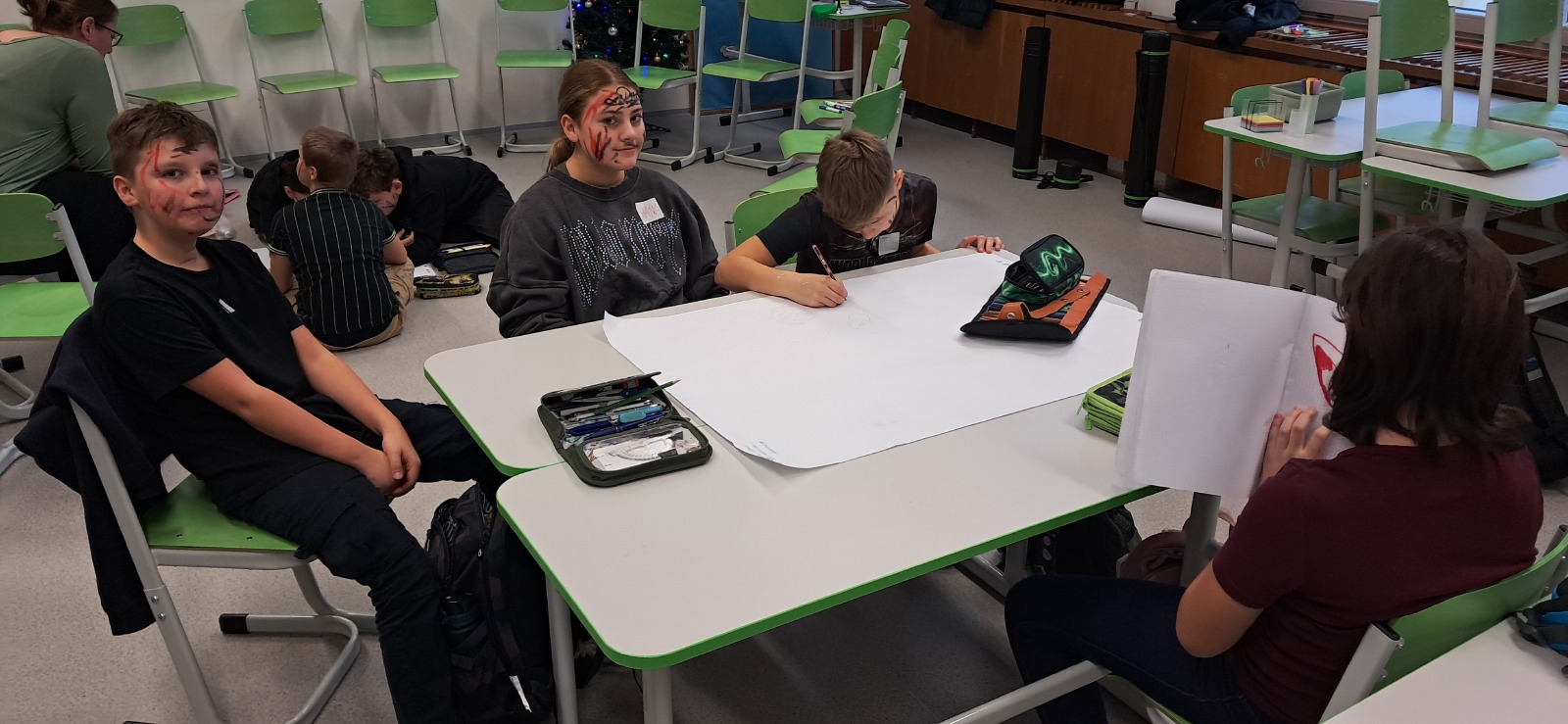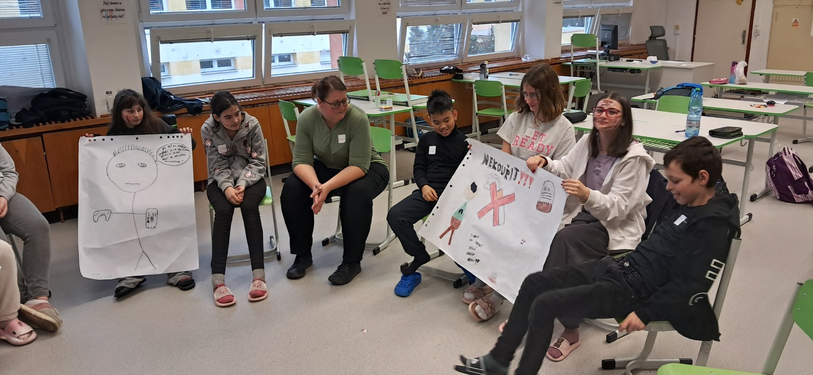 V pátek 5.12. jsme měli program, ve kterém jsme probírali závislosti např. tráva, alkohol, káva a mobil. Dělali jsme negativní reklamu na sociální sítě, drogy, kouření a na energy drinky. Nejvíce se nám líbilo, jak jsme kreslili plakáty a pracovali ve skupinách.