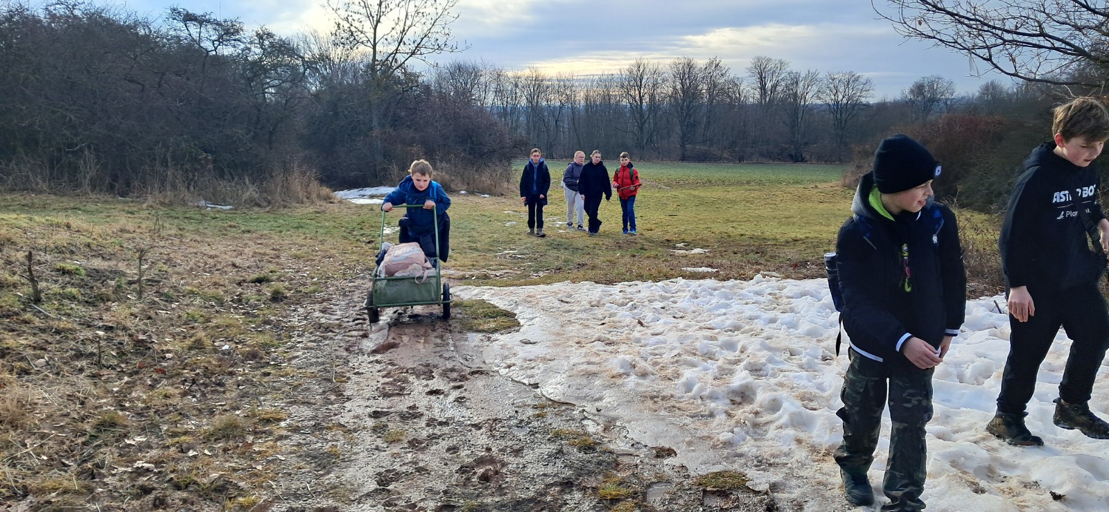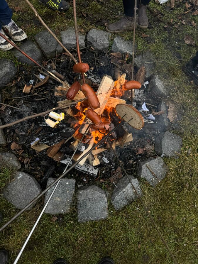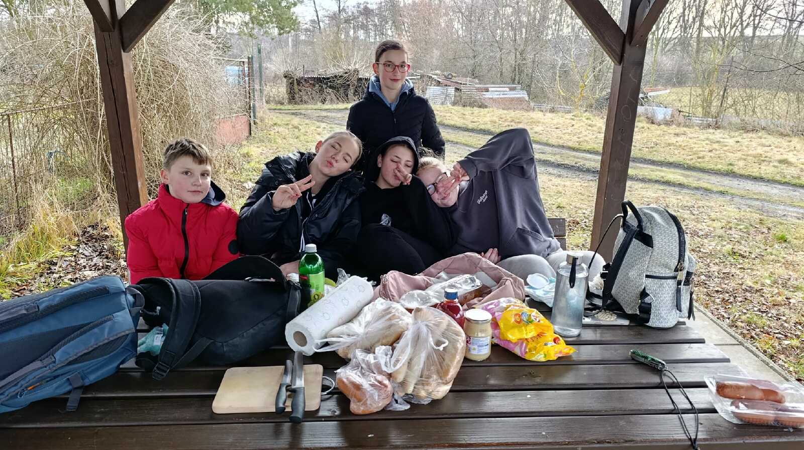 Výlet třídy 6.A začal tím, že jsme se ráno sešli před školou a naplánovali trasu. Nejprve se dva spolužáci dohadovali s panem učitelem a paní asistentkou. Poté jsme konečně mohli vyrazit. Po cestě jsme se zastavili ještě v Bille pro čerstvé pečivo a pití na cestu. Někteří si celou cestu stěžovali, jiní se těšili až dojdou do cíle. Samozřejmě došlo i na konflikty, ale naštěstí to nebylo nic hrozného. Když jsme procházeli dlouhým tunelem vedoucím k Velkému rybníku, tak si někteří pouštěli písničky, aby se nebáli. Byla tam tma a holky furt řvali. Když jsme přišli k tábořišti do Bylan, tak kluci začali připravovat dřevo, které si celou cestu vezli s sebou a holky připravovaly věci na opíkání. Někteří si opekli buřty nebo maršmelouny, chleba i rohlík. Po chvíli začalo mírně pršet. Všichni se báli, že nám oheň uhasí, ale nestalo se tak. Po pár hodinách jsme se sbalili, uhasili oheň a vyrazili na cestu nazpět. Cestou jsme trochu zmokli a stěžovali si, že nás bolí nohy a furt jsme zastavovali. Když jsme přicházeli ke škole, tak jsme ještě nakrmili kachny v rybníce zbylým pečivem. Před školou jsme se vyfotili a rozloučili.