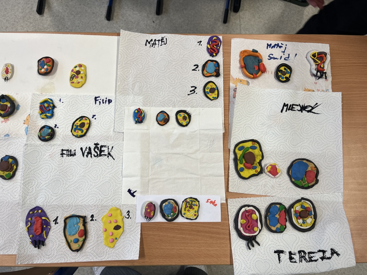 V hodině přírodopisu si žáci vyzkoušeli vymodelovat bakteriální, rostlinnou, živočišnou buňku.![]()