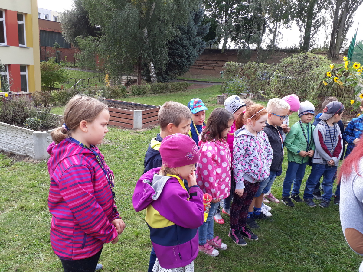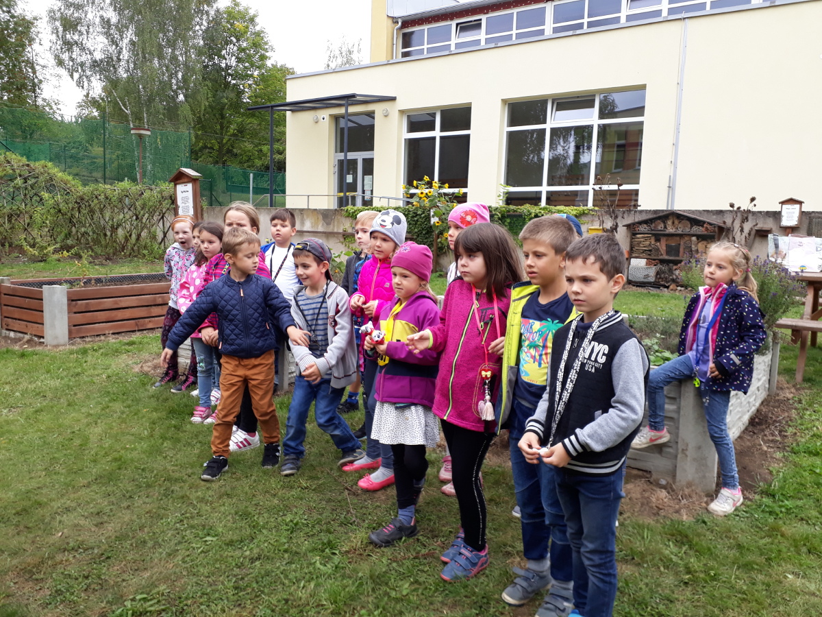 Prvňáčci si vyzkoušeli, že učit se mohou nejen ve třídě, ale i venku – třeba na zahradě.