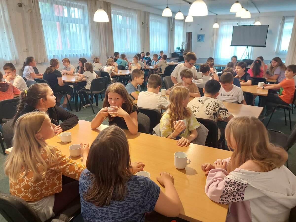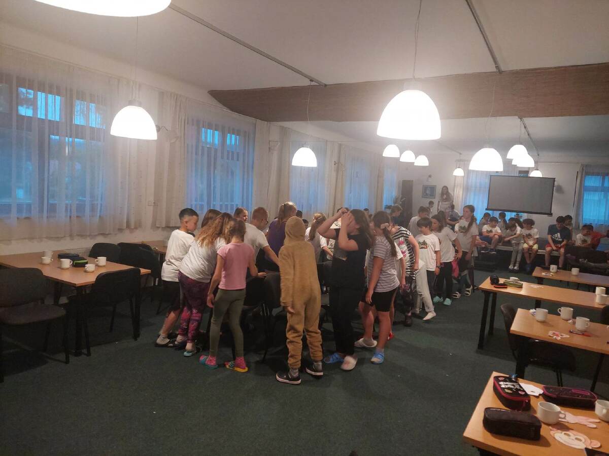 Včera jsme v pořádku dorazili do hotelu Atlantida, který se nachází ve Staré Živohošti u přehrady Slapy. Ubytovali jsme se do útulných pokojů, vybalili jsme si a šli na oběd. Po poledním klidu jsme se přivítali s našimi animátory, kteří nám přivezli krásná trička. Zažili jsme spousty aktivit, různého zaměření, i přes nepřízeň počasí jsme vyrazili na chvíli ven. Ráno jsme se probudili do nedeštivého dne, tak jsme hned po snídani vyrazili na průzkum okolí a do lesa stavět domečky pro lesní skřítky. Už se těšíme na odpolední program plný zábavných činností.