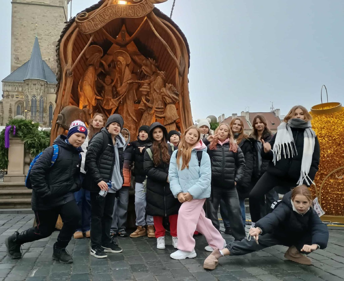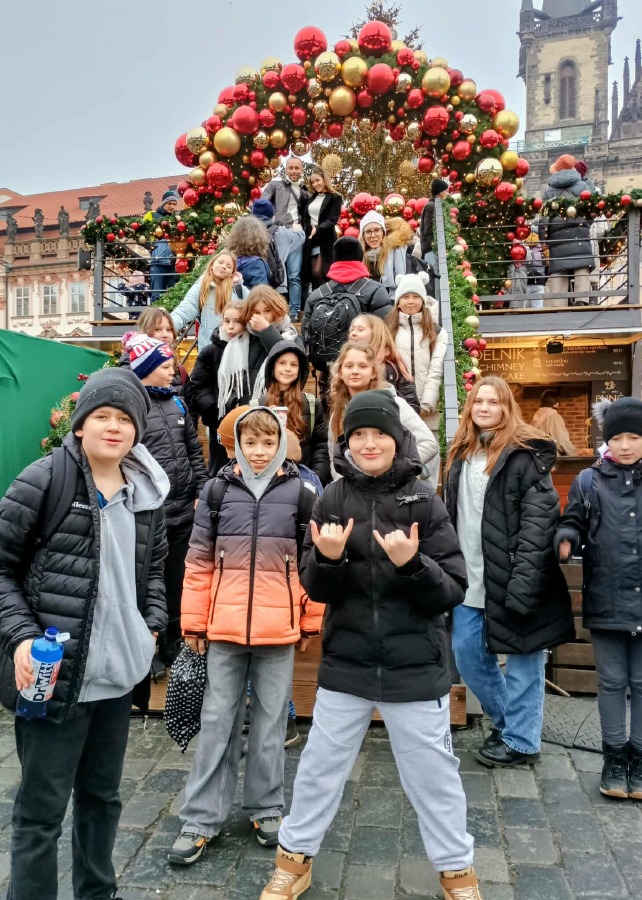 V Praze jsme prošli Václavské náměstí, v dolní části náměstí jsou trhy, z Můstku jsme se dostali na Staroměstské náměstí, cestou jsme se ještě zastavili na Havelském tržišti. Na "Staromáku" jsme si prohlédli stánky, vánoční strom, krásný betlém, letošní trhy se obešly bez ohrádky se zvířaty. Všude plno lidí, vánoční hudba, světýlka a vůně. Dívky v davu objevily moderátora Aleše Hámu a vyfotily se s ním. Celetnou ulicí jsme se dostali k Prašné bráně a na náměstí Republiky. Cestování jsme zakončili nakupováním v Palladiu. A z Hlavního nádraží vláčkem hurá domů.