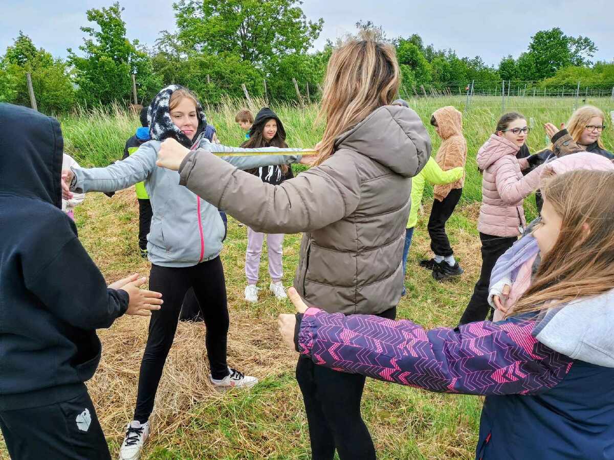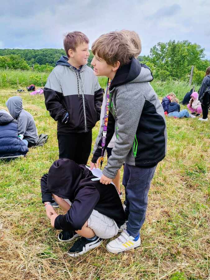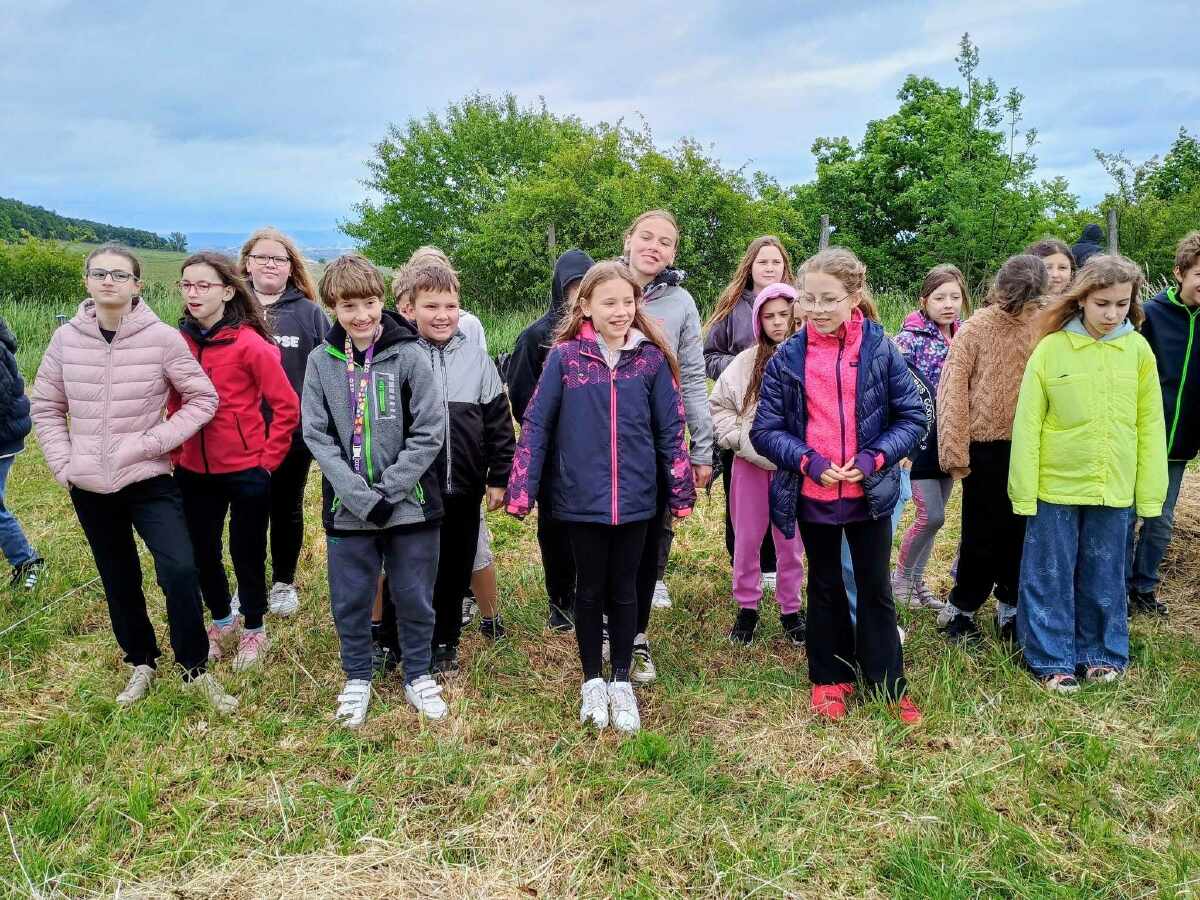 Dnešní den nebyl sice slunečný, ale alespoň jsme nezmokli. Cestou do školy si ještě některé dívky natrhaly kytičky krásného lučního kvítí, milovnice zvířat si zas nasbíraly šnečí rodinky. A omlouváme se rodičům za ušpiněná kolena...