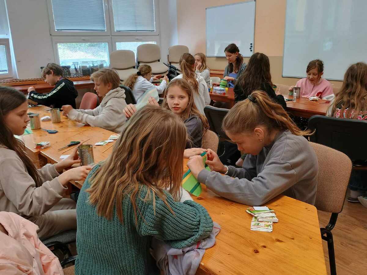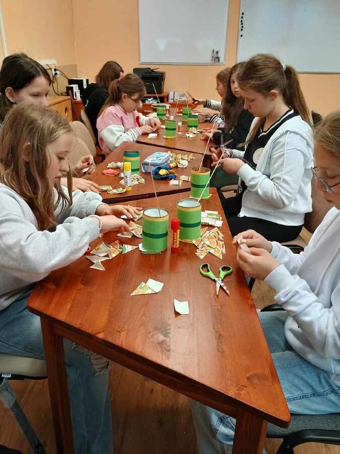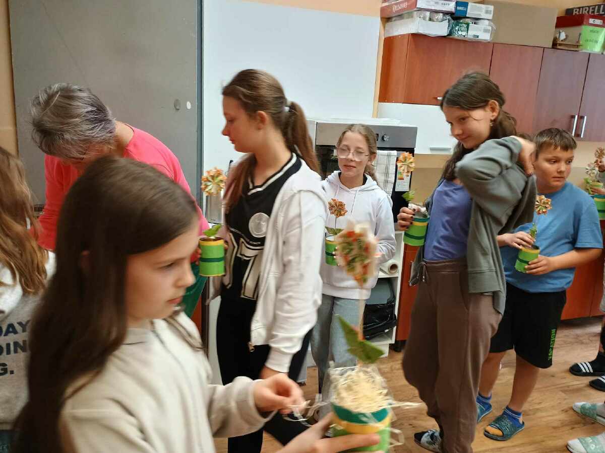 vyráběli kytičku z čajových sáčků k jejich nedělnímu svátku.