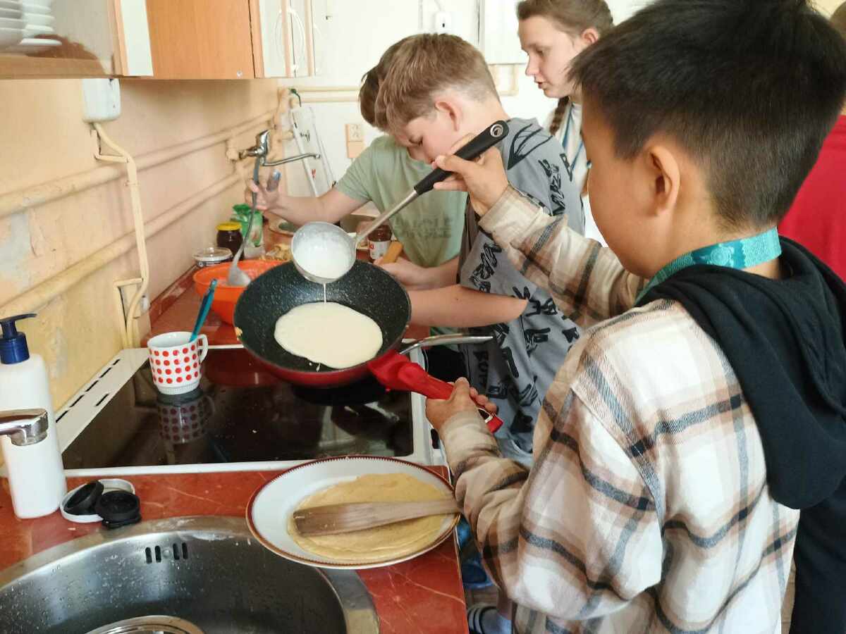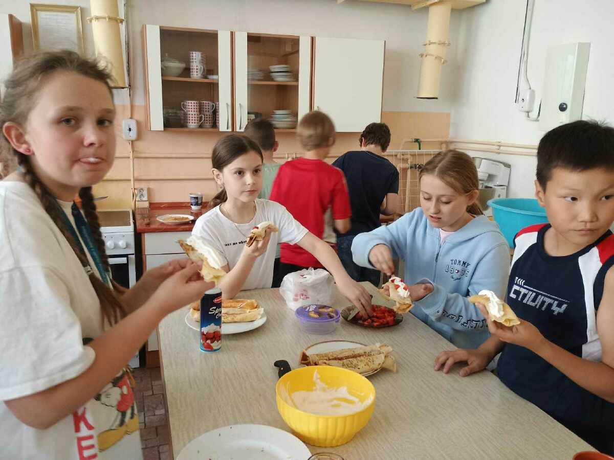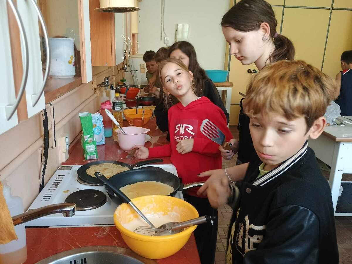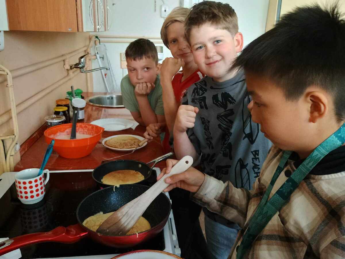 V úterý 29.4. jsme si byli vyzkoušet ve školní kuchyňce, v rámci praktické výuky popisu pracovního postupu, jak si připravit palačinky. Rozdělili jsme se do 4 skupin a podle receptu z kuchařské knihy jsme se pustili do práce. Odměna byla zasloužená a sladká - s marmeládou, ovocem, nutellou i šlehačkou! ![]()