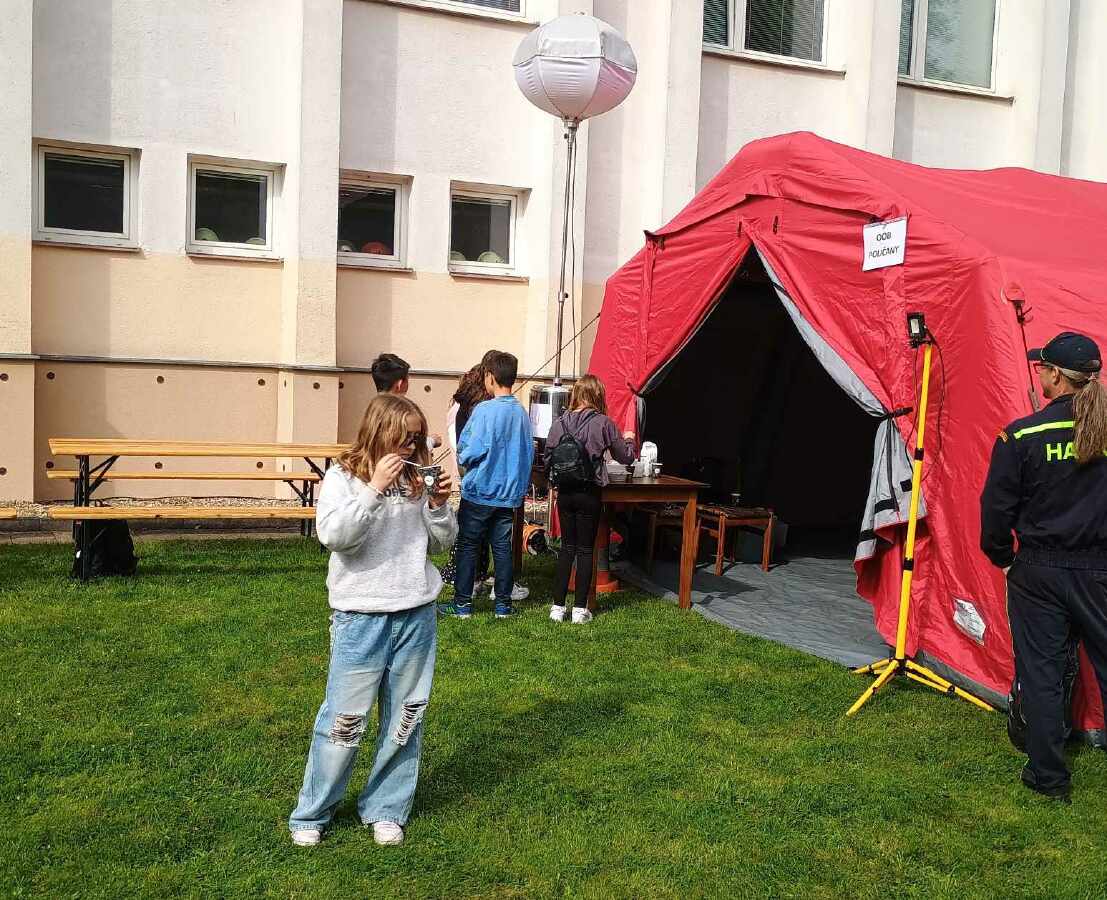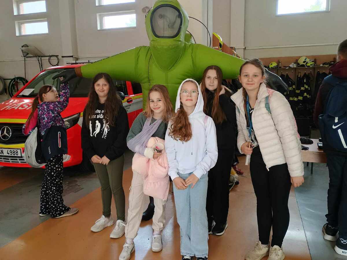 Nejdříve jsme si prohlédli budovu HZS, dozvěděli jsme se, jak probíhá pracovní den hasiče. Z připaveného programu jsme viděli zásah u dopravní nehody s vyproštěním zraněné osoby, hašení požáru, ukázku jízdy hasičských vozidel v terénu. Prošli jsme si garáže s hasičskými vozy, ochutnali čaj, pohladili si výra a v doprovodném programu jsme si vyzkoušeli různé aktivity: hod míčkem do figuríny hasiče, stříkání vody na cíl ze džberovky, orientaci v kouřovém stanu...