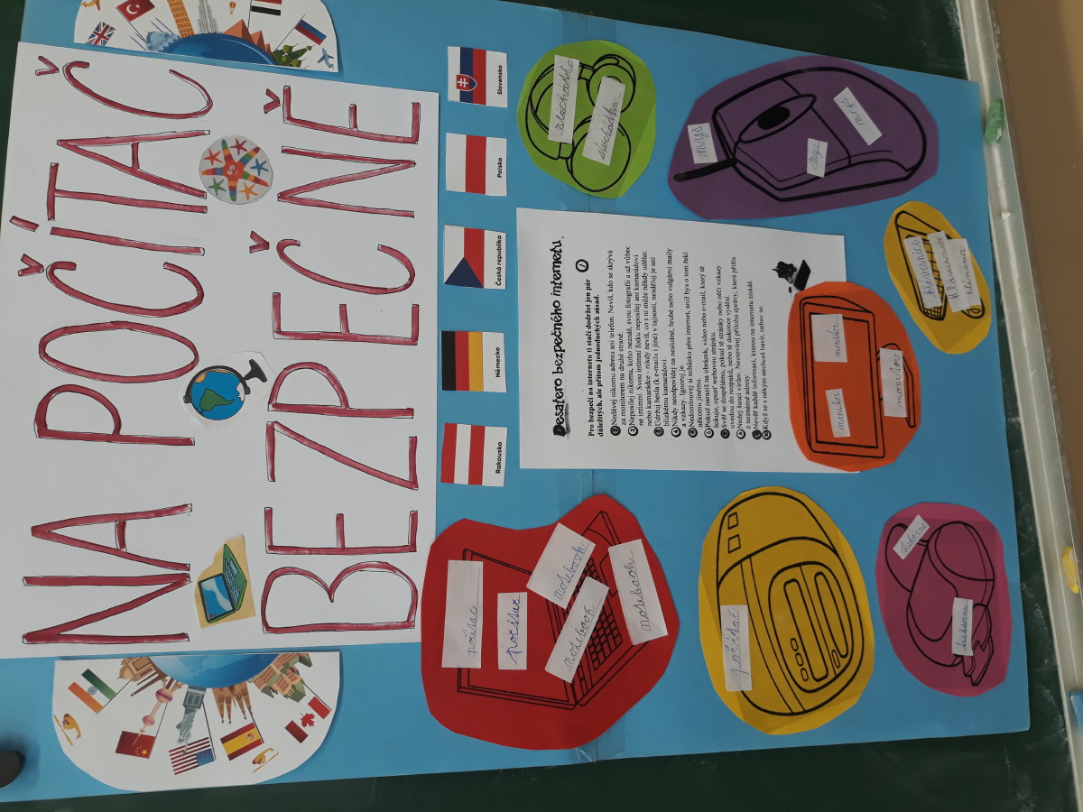 Slovo kyberšikana nám sice ještě nic neříká, ale o počítačích už něco víme. Povídali jsme si, jak s počítačem opatrně zacházet, jak při práci na něm nedělat nic, co nám rodiče nedovolí. Už víme, že se na počítači můžeme připojit na internet a tím se dostaneme do celého světa. Musíme však být velmi opatrní. Také víme, že nesmíme nikoho bez dovolení fotit a jeho fotky někde vystavovat. I své vlastní fotografie nesmíme jen tak posílat dál. Abychom na to všechno nezapomněli, vystavili jsme si ve třídě plakát, který jsme společně vyrobili.